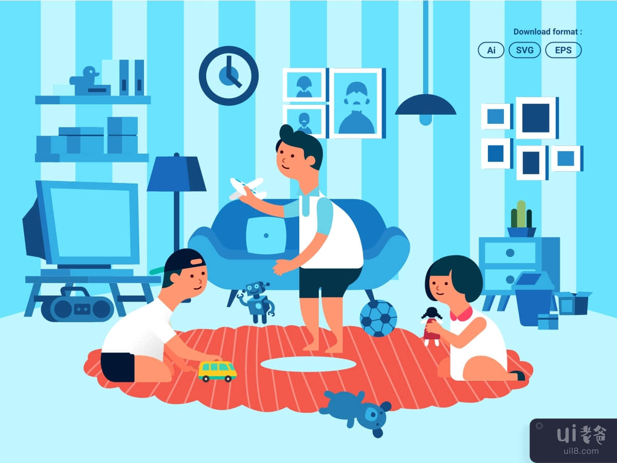 您好,我在这里创建一个,孩子们在客厅玩耍