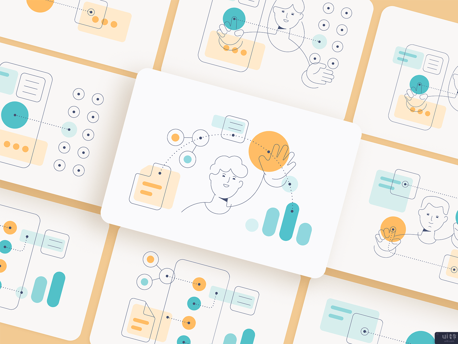 It's important to have each illustration represent as a modular block, which you can use to build absolutely new ones.