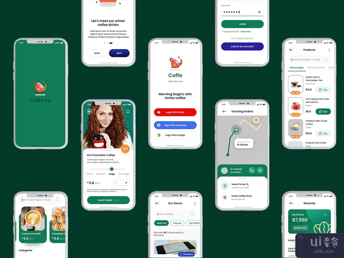 Cofee CO 移动应用程序 UI 套件(Cofee CO Mobile App UI kits)