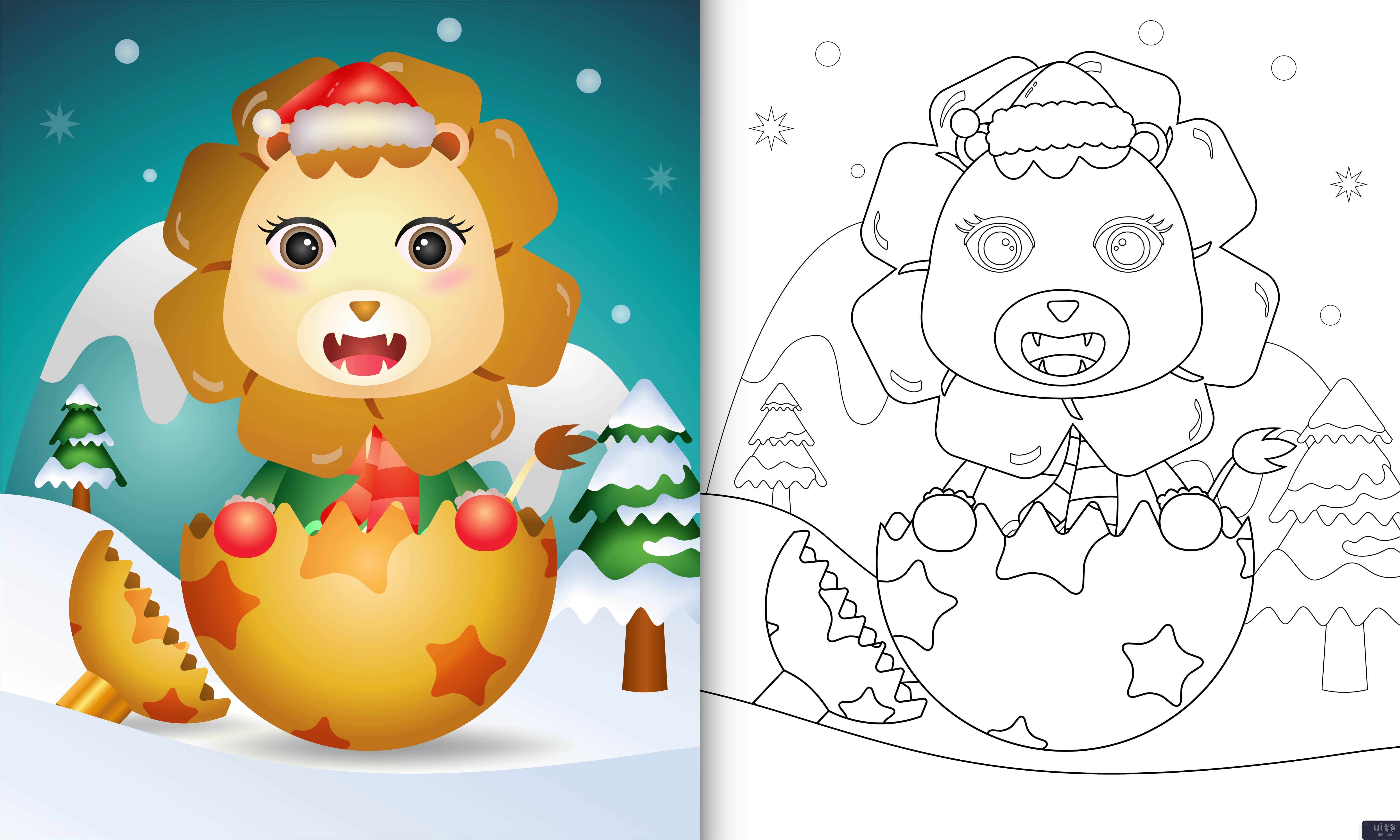 带可爱狮子的孩子们的图画书(coloring book for kids with a cute lion)