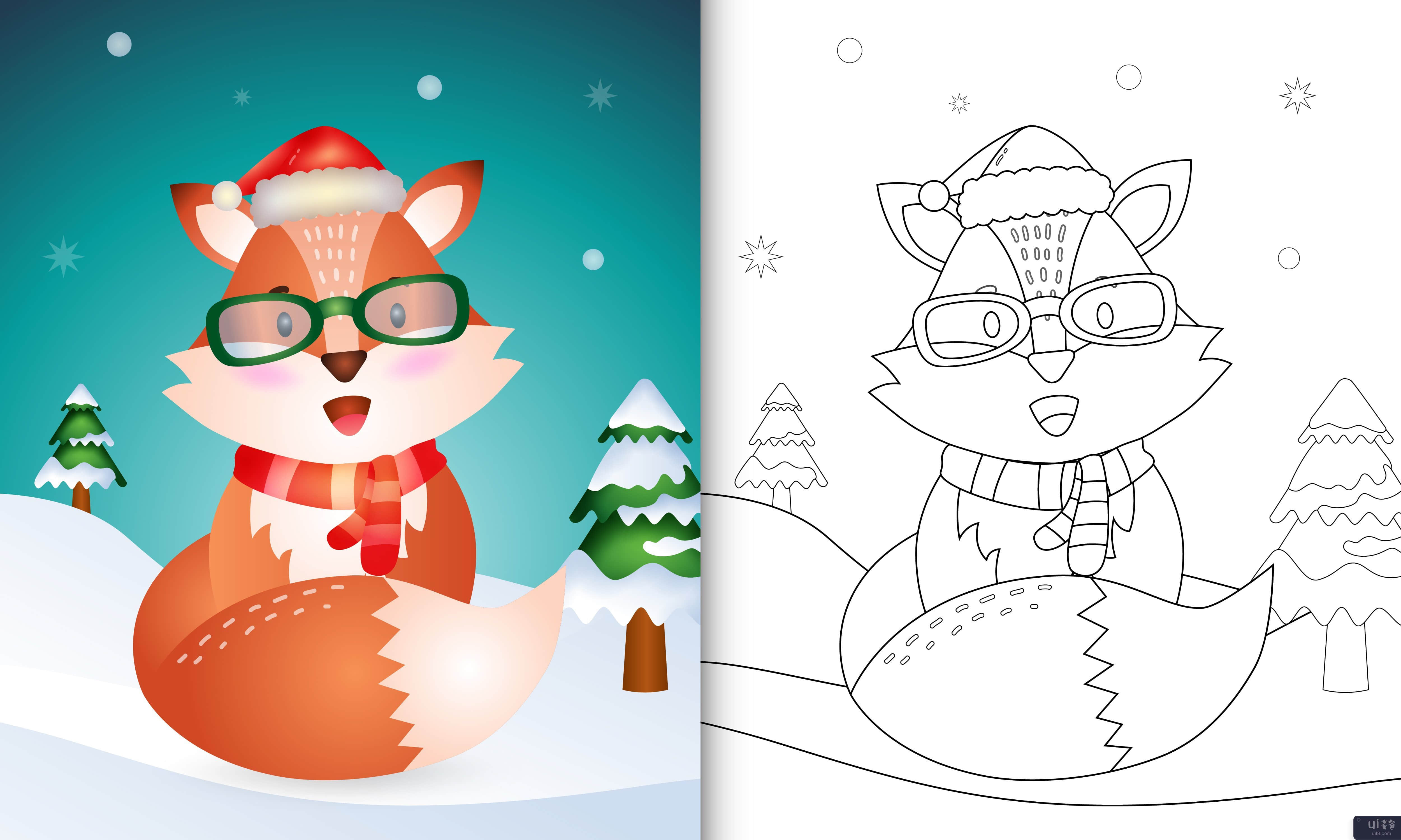 带有可爱的狐狸圣诞人物的着色书(coloring book with a cute fox christmas characters)