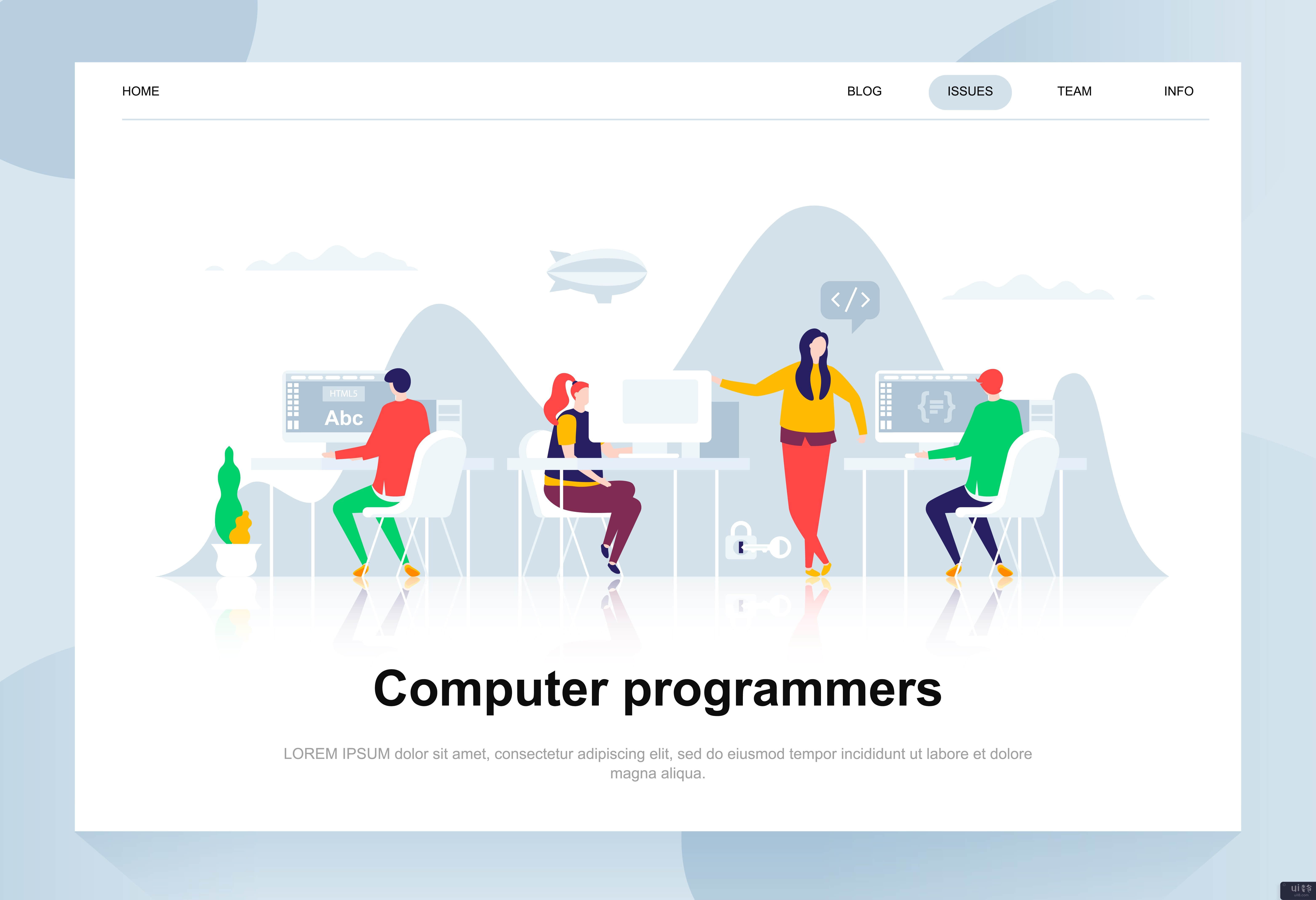 Computer programmers modern flat design concept. Software development and people concept. Landing page template. Conceptual flat vector illustration for web page, website and mobile website.