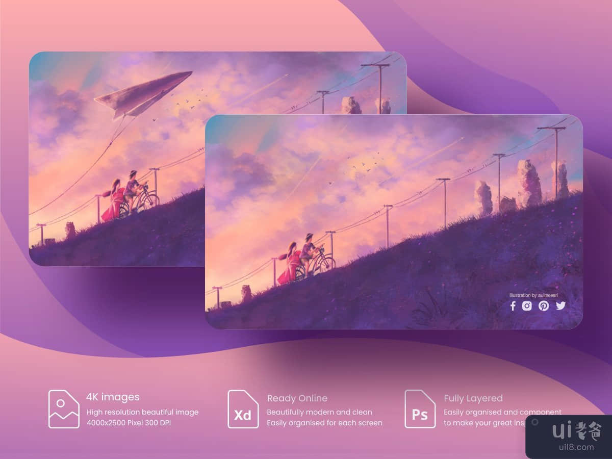 插图 日落时分情侣在路上骑车的浪漫时刻