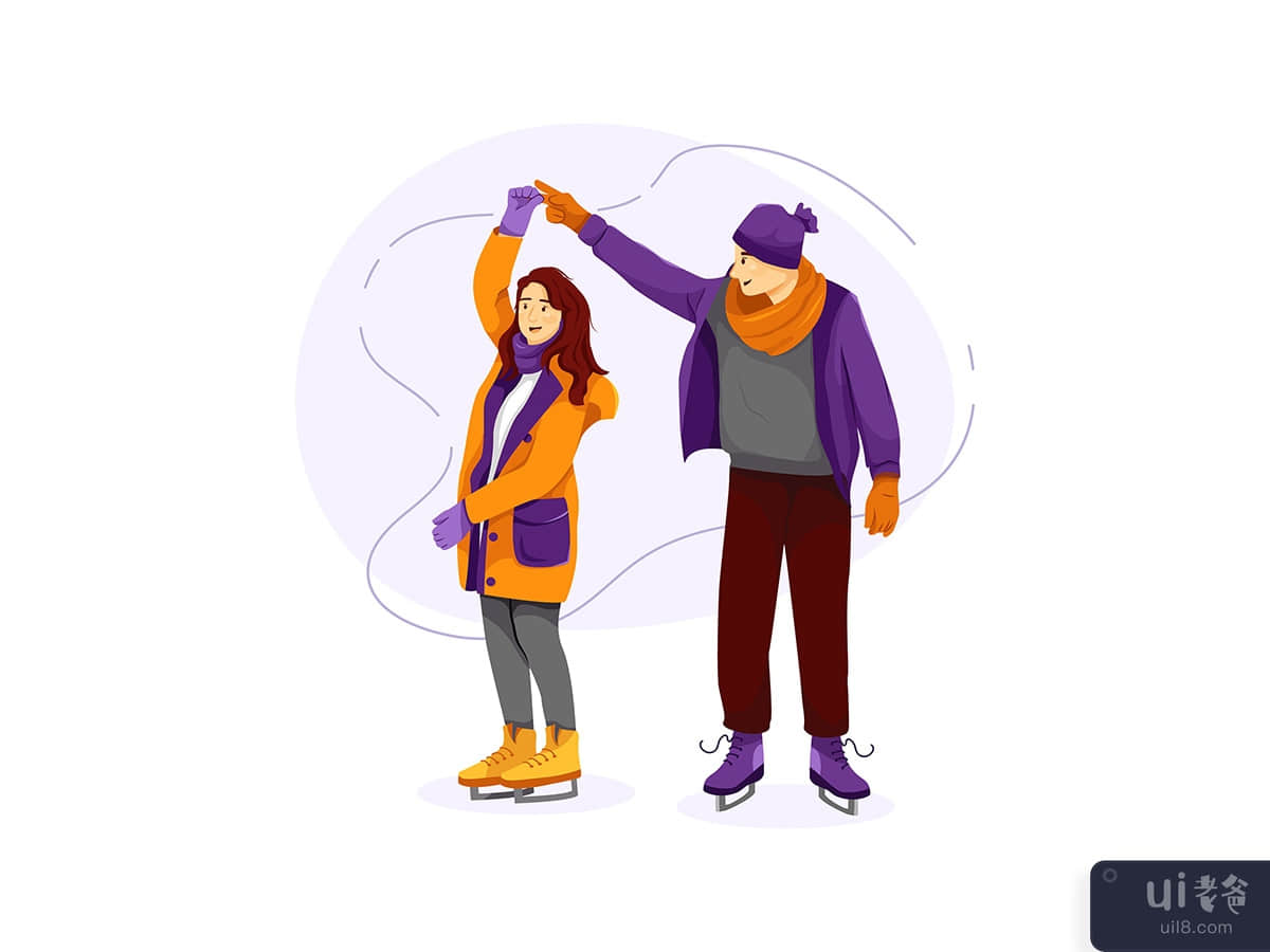 夫妇在滑冰期间享受舞蹈(Couple enjoying dance during ice skating)