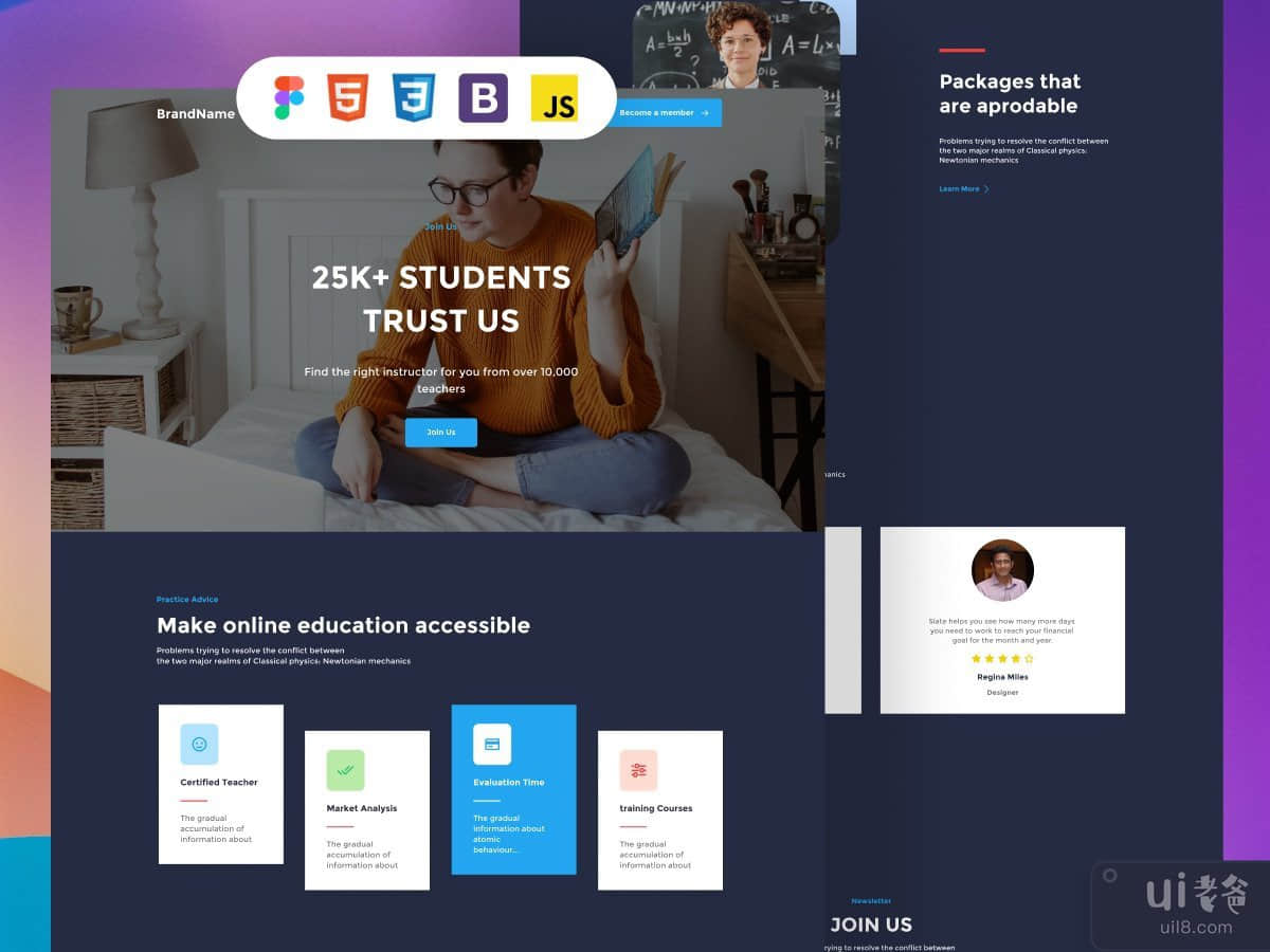 Course Alpha 是一个免费的 html 模板,带有鲜艳的调色板。使用 figma Course Alpha 网站,您现在可以创建一个引人入胜的现代课程网站,同时仍能取得引人注目的效果。