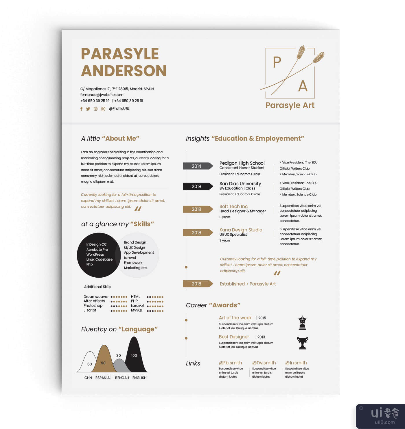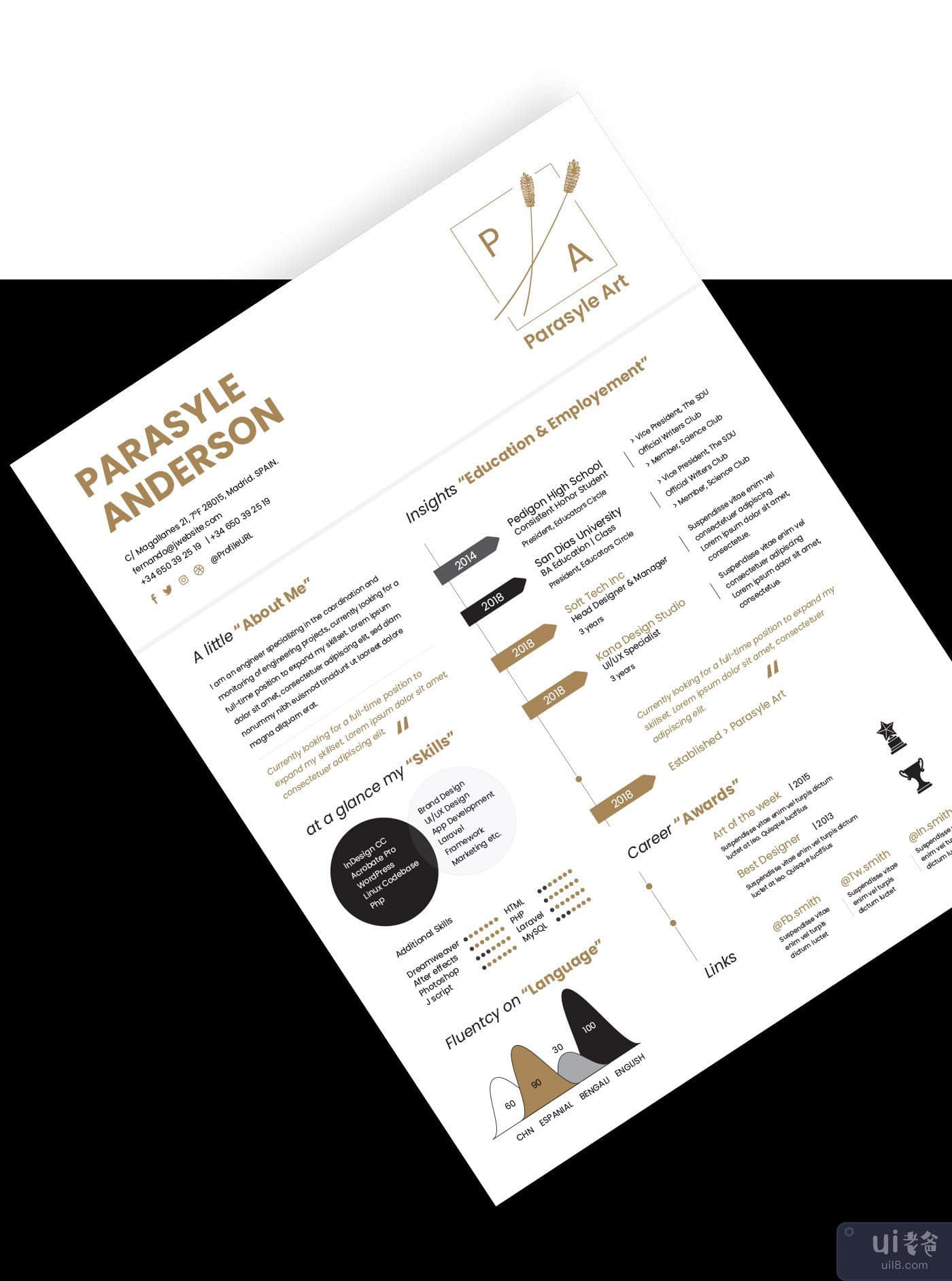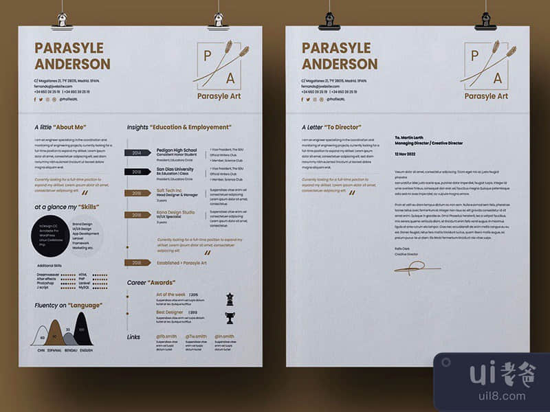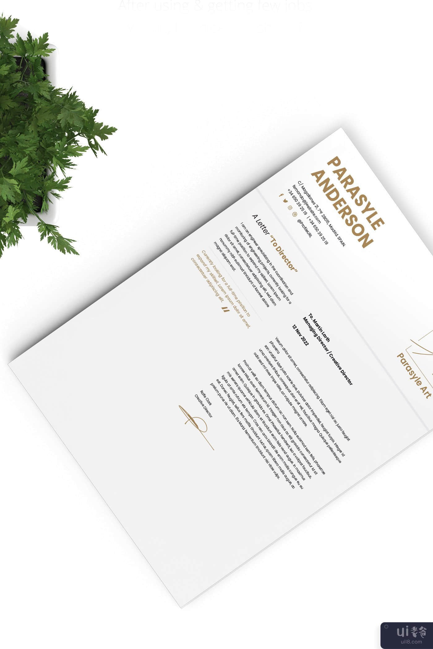 创意简历简历模板1页简历+求职信(Creative Resume CV Template 1 pages Resume + Cover Letter)