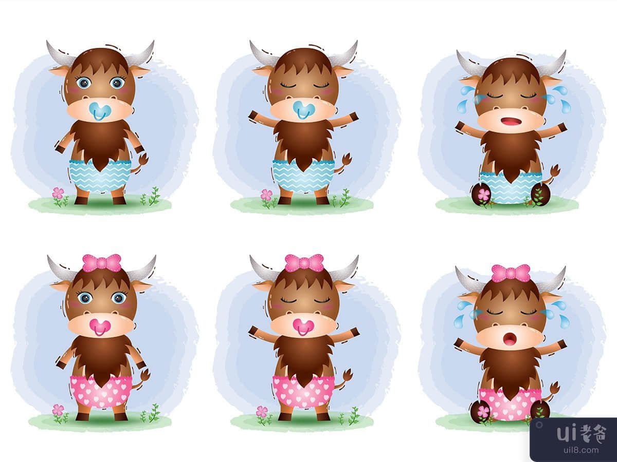 儿童风格的可爱牦牛宝宝系列(cute baby Yak collection in the children's style)