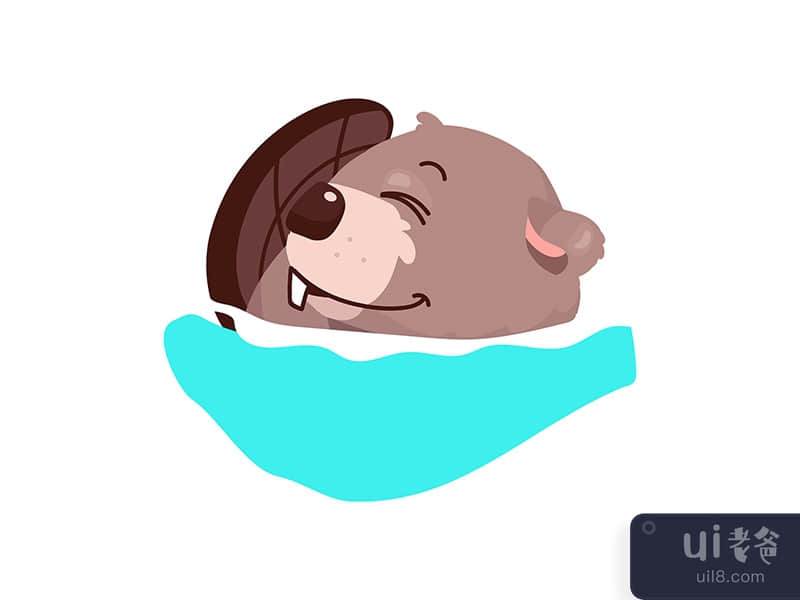 可爱的海狸拥抱尾巴和睡觉的半平面彩色矢量字符(Cute beaver embracing tail and sleeping semi flat color vector character)