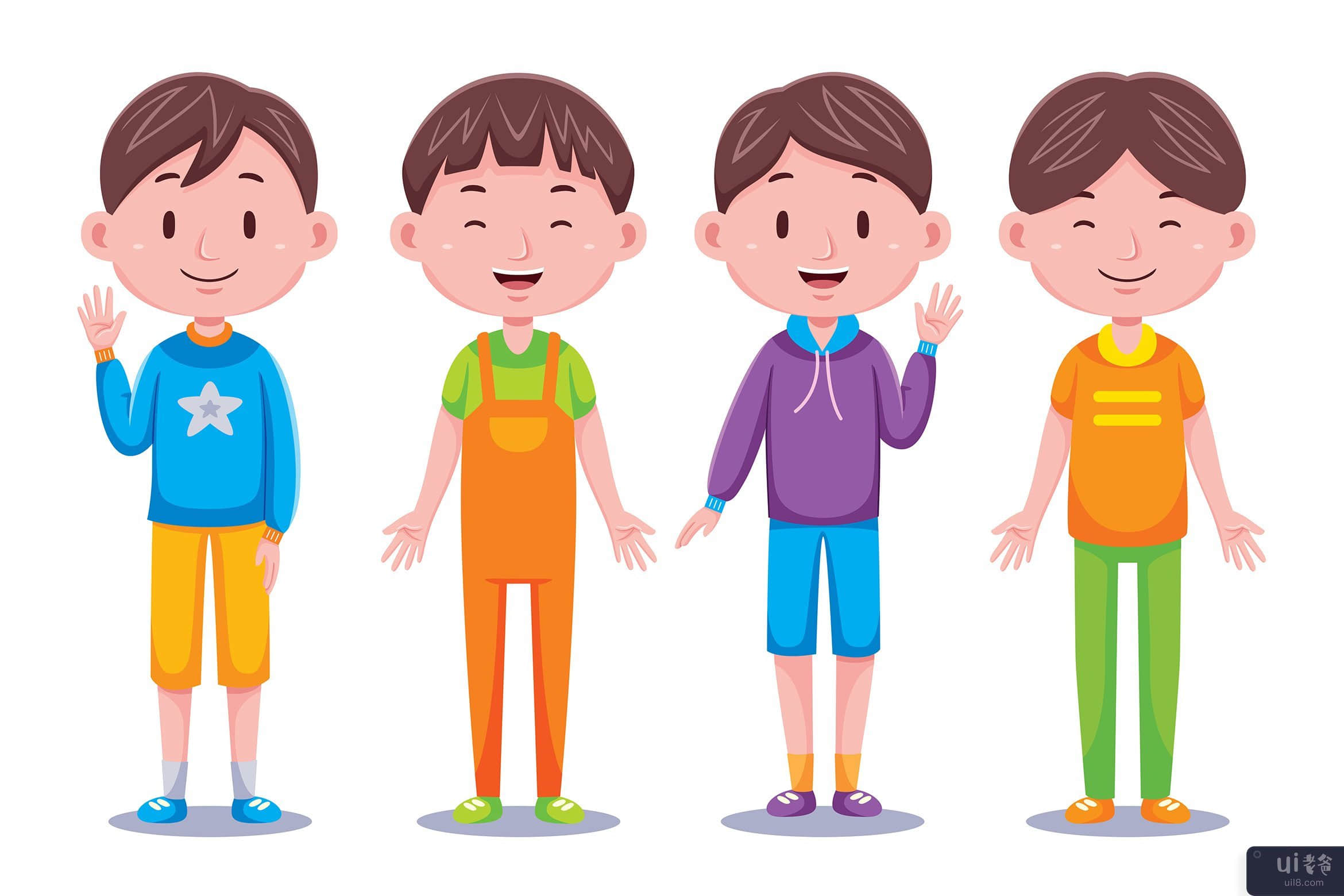 可爱的男孩孩子矢量插图(Cute Boy Kids Vector Illustration)