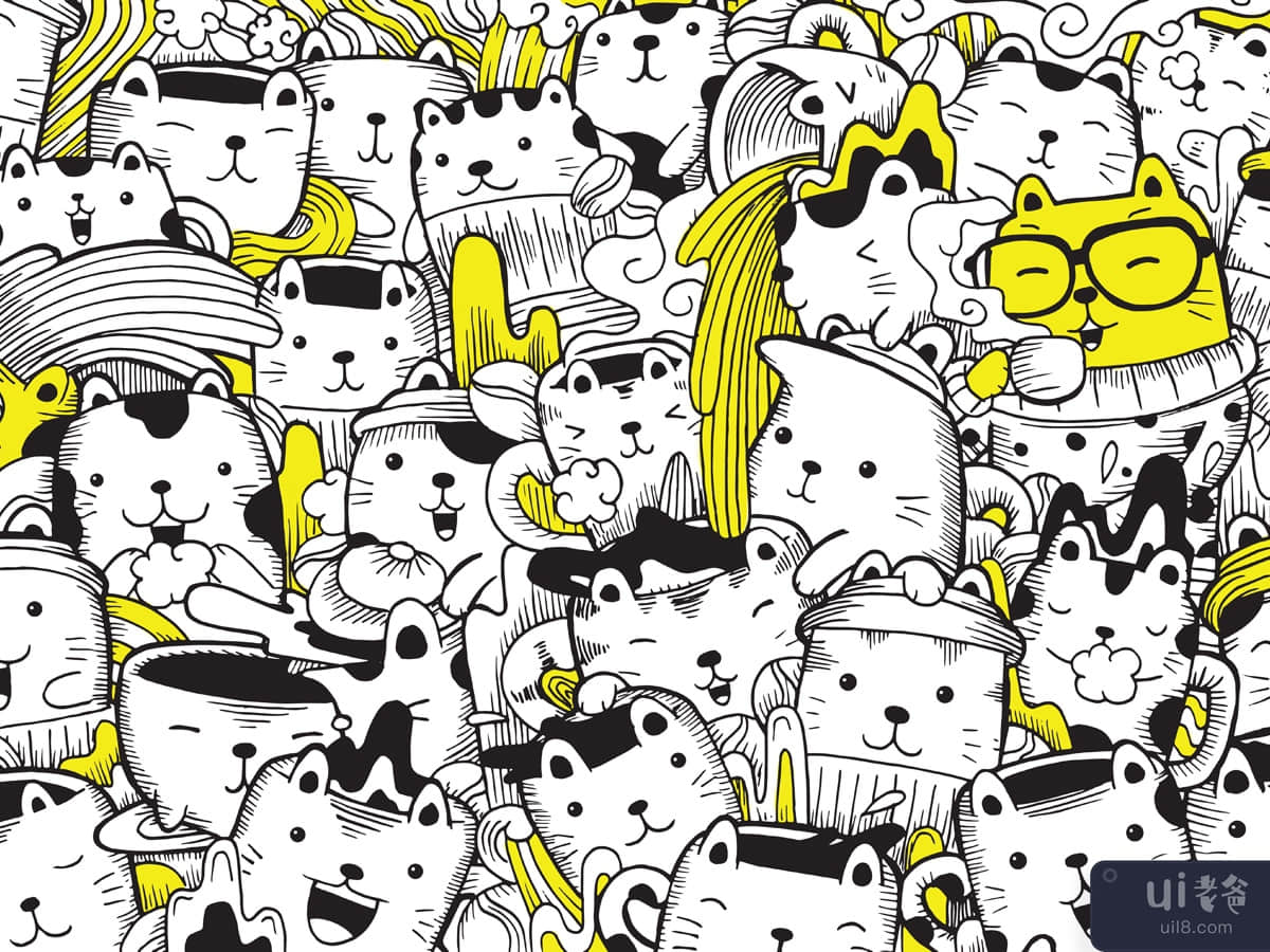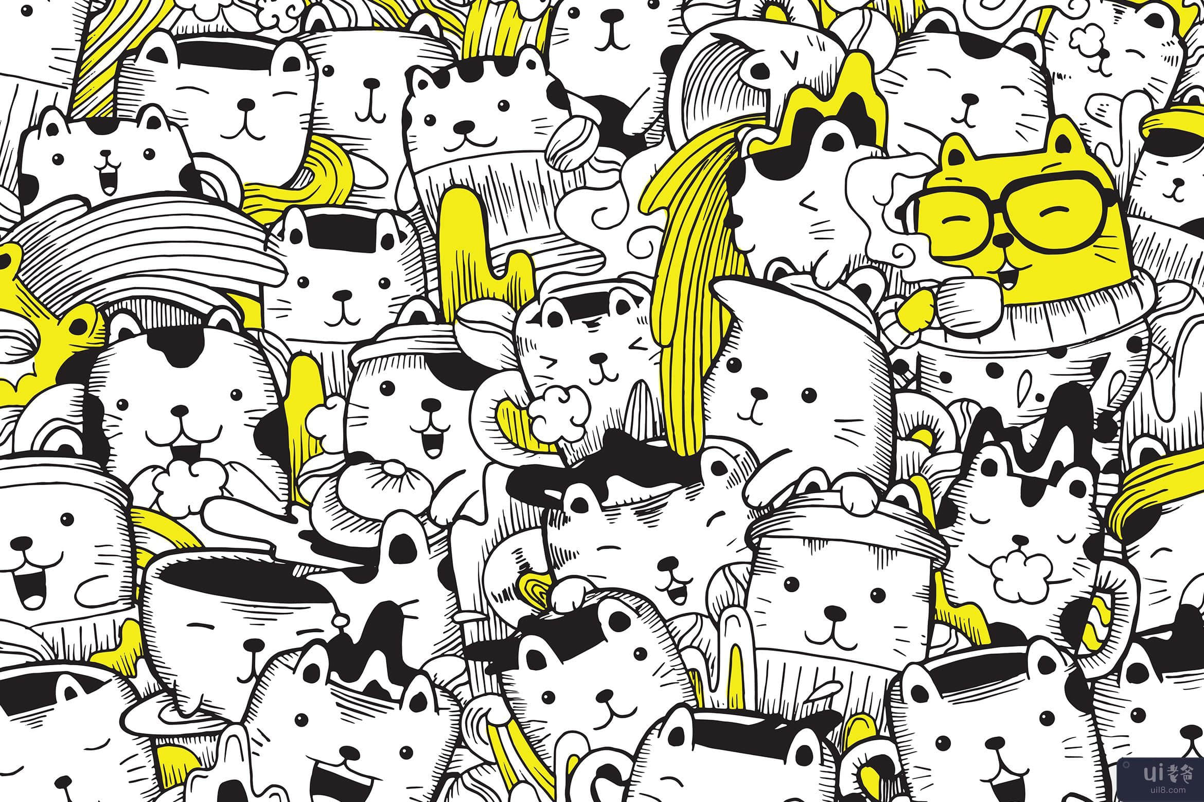 猫和咖啡的孩子们的可爱着色(Cute coloring for kids with Cats and Coffee)