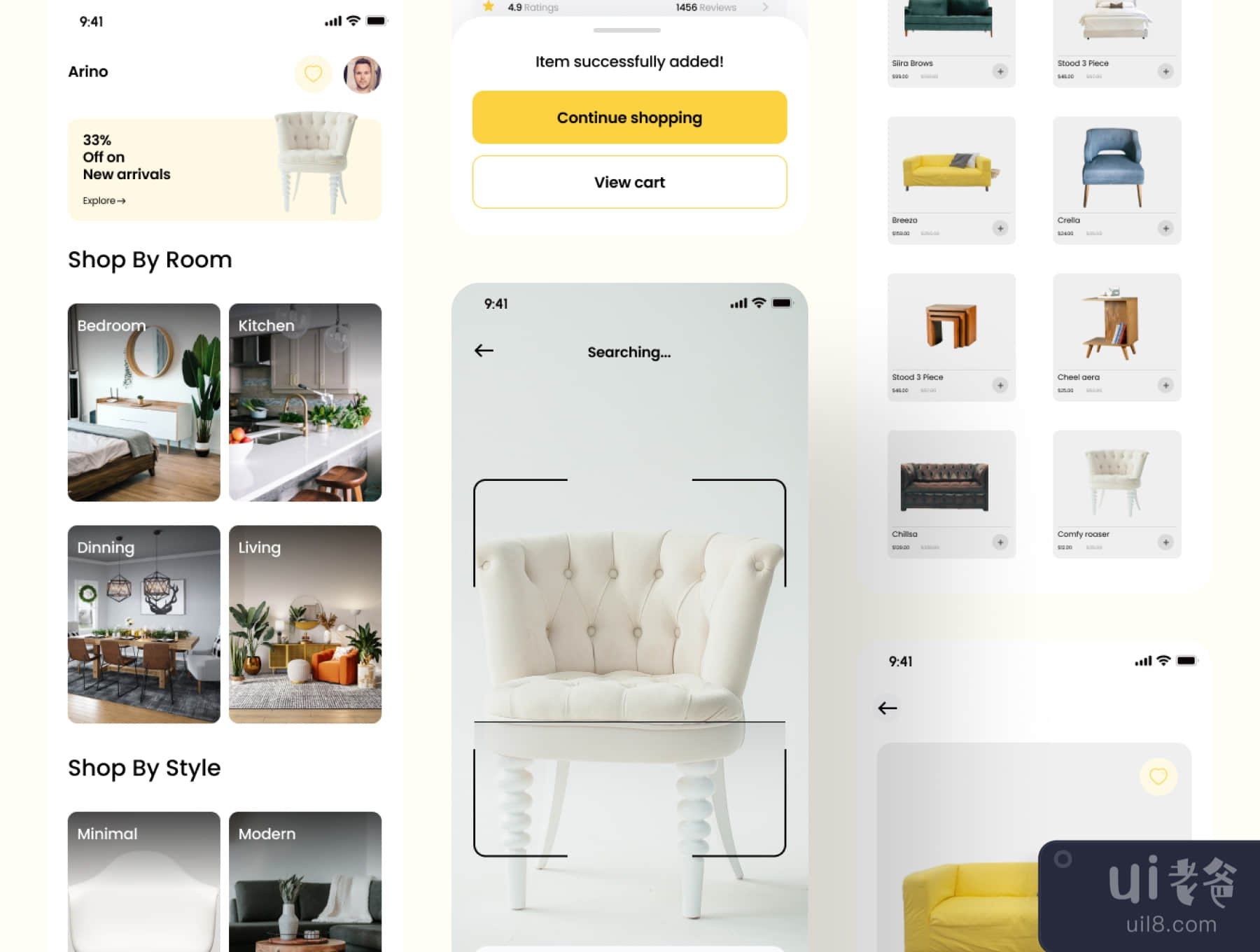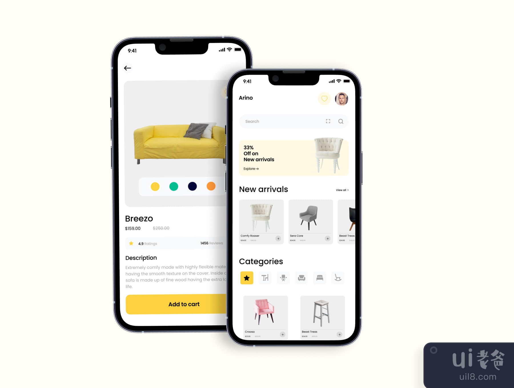 Arino - 家具电商应用UI套件 (Arino - Furniture ecommerce App UI Kit)