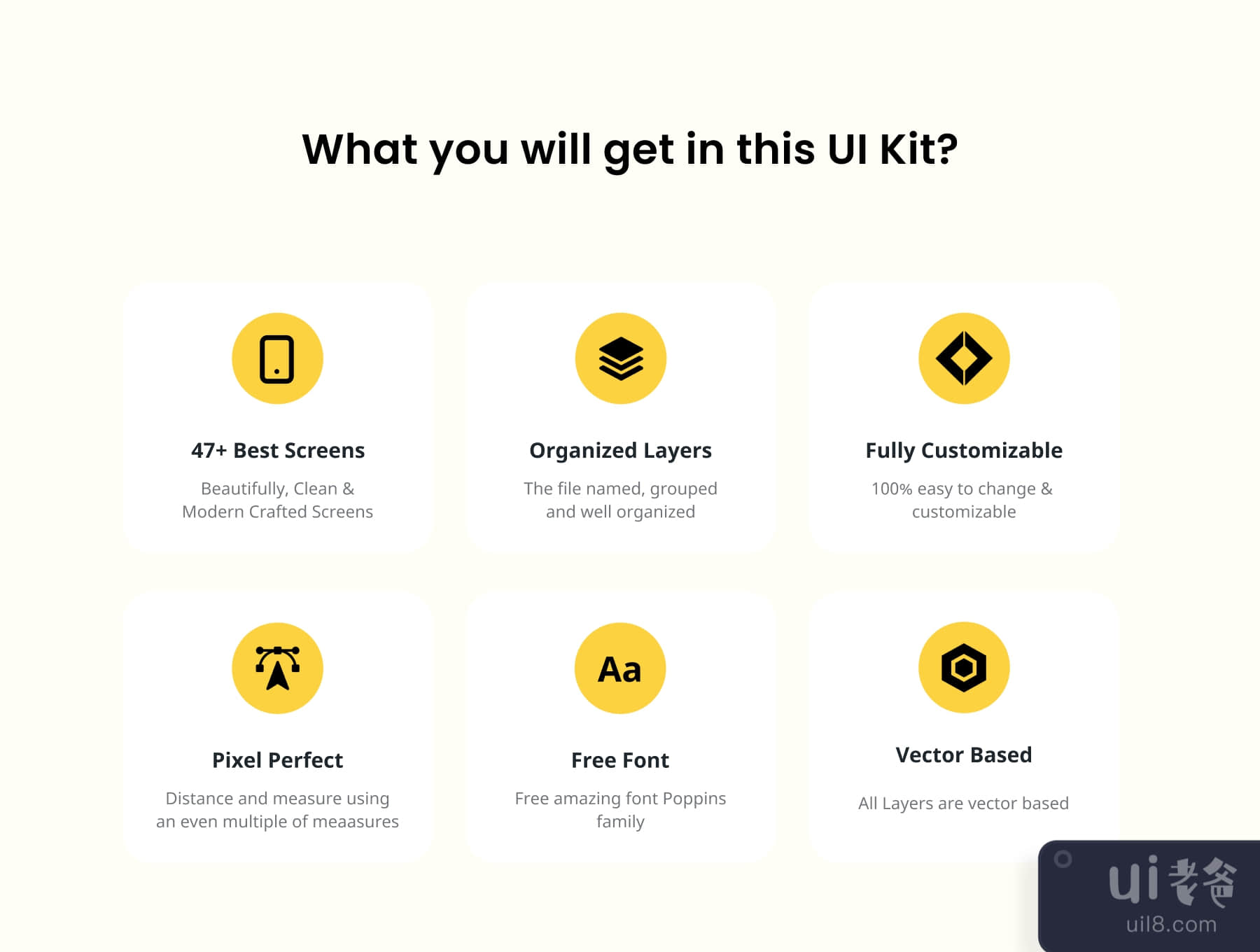 这个高质量的移动UI工具包有完整的符号和组件,你可以用于任何目的。所有元素的设计都是为了加快你的设计过程。