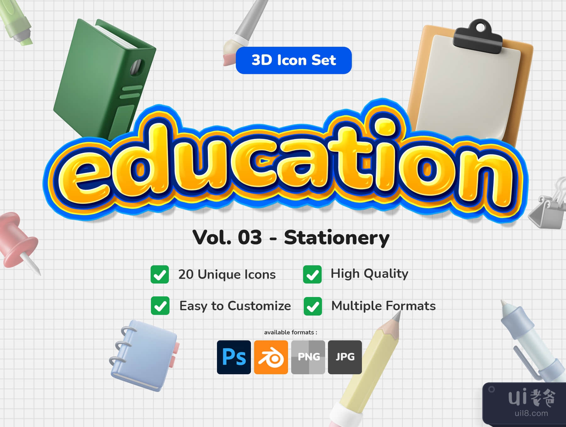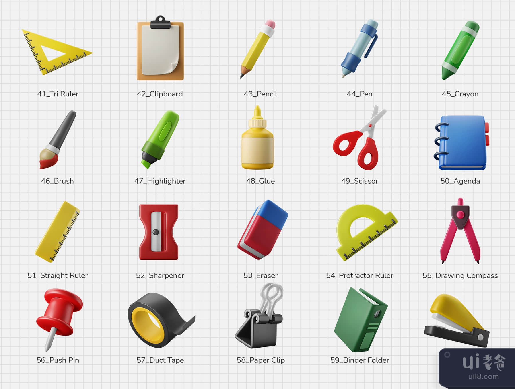 3D图标集--教育文具主题 (3D Icon Set - Education Stationery Theme)