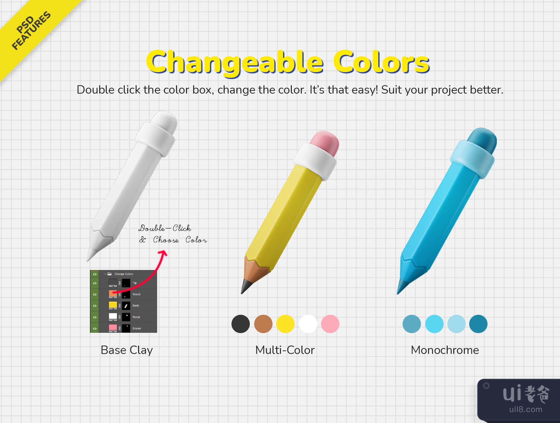 完全定制,改变颜色和可编辑的外观,可编辑的PSD和3D混合器