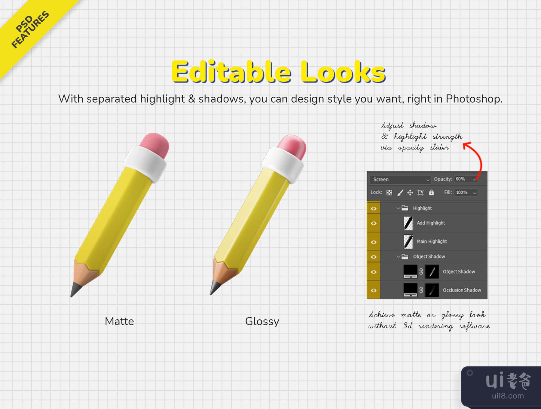 Full Customization, Change Colors and Editable Looks with Editable PSD & 3D Blender