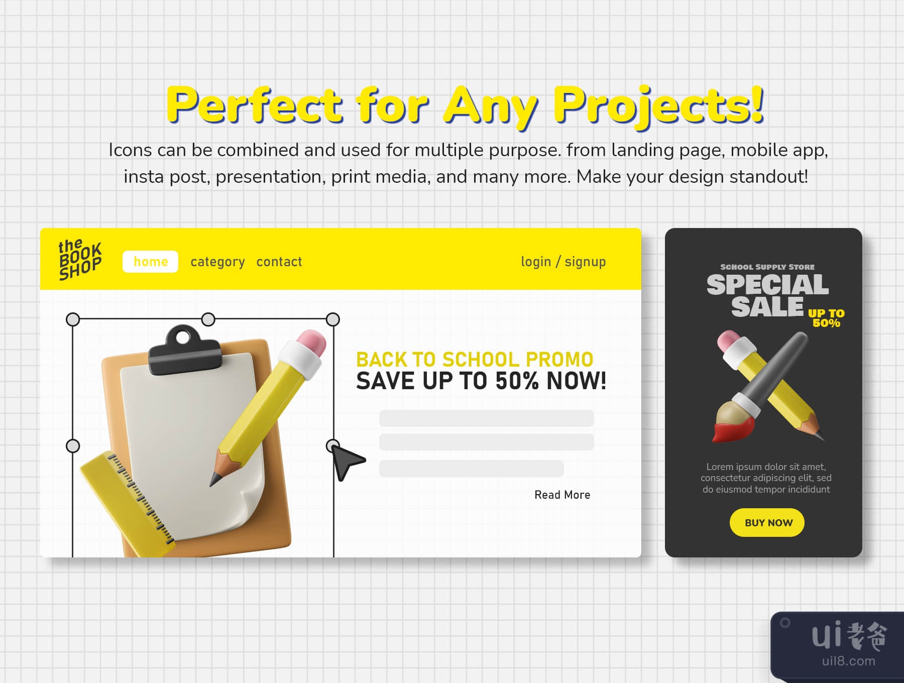 This icon set is perfect for any education or school themed project. Perfect for making standout Website Landing Page, Mobile App Interface, Instagram Post, Web Banner, Printed Media, Presentation, Promotion, Poster and many more.