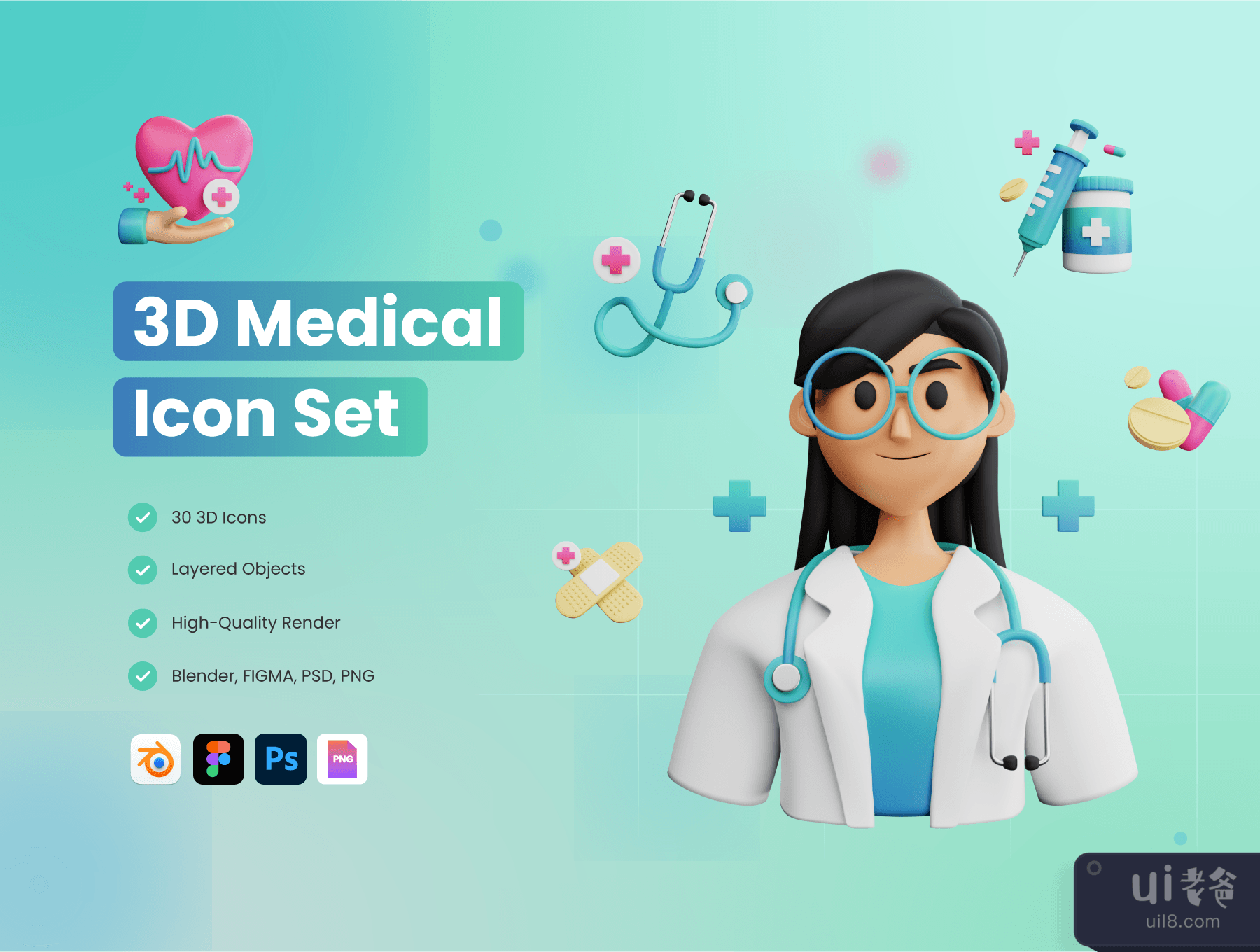 TL;DR: 30个3D医疗图标。针对特定领域,完全可定制。4种格式。