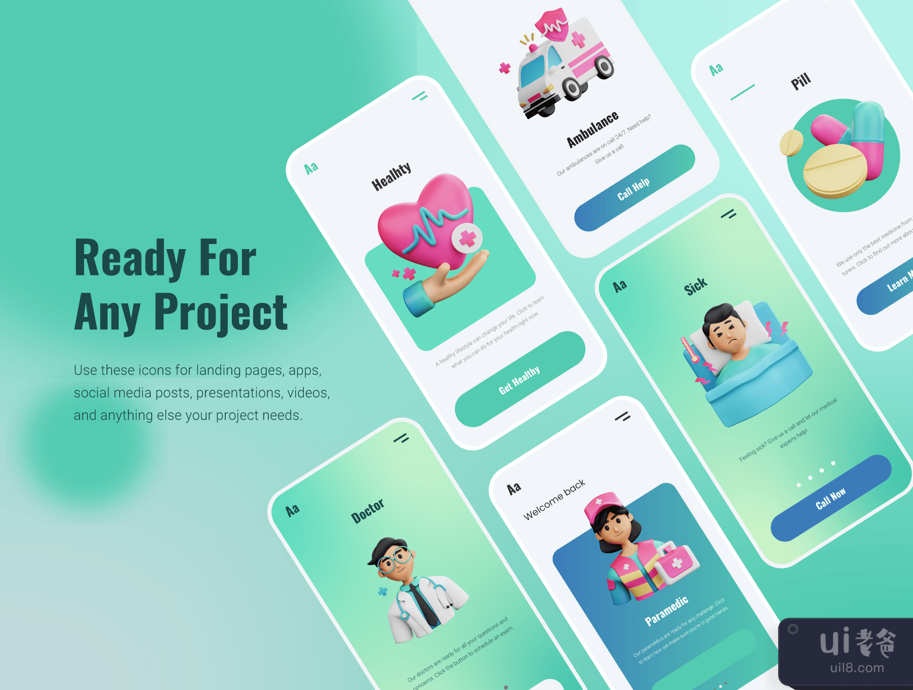 希望给你的医疗设计加点料?无论你是创建一个网页还是为你的诊所制作新鲜的海报,你选择的视觉效果可以产生巨大的差异。介绍一下30个3D医疗图标集。