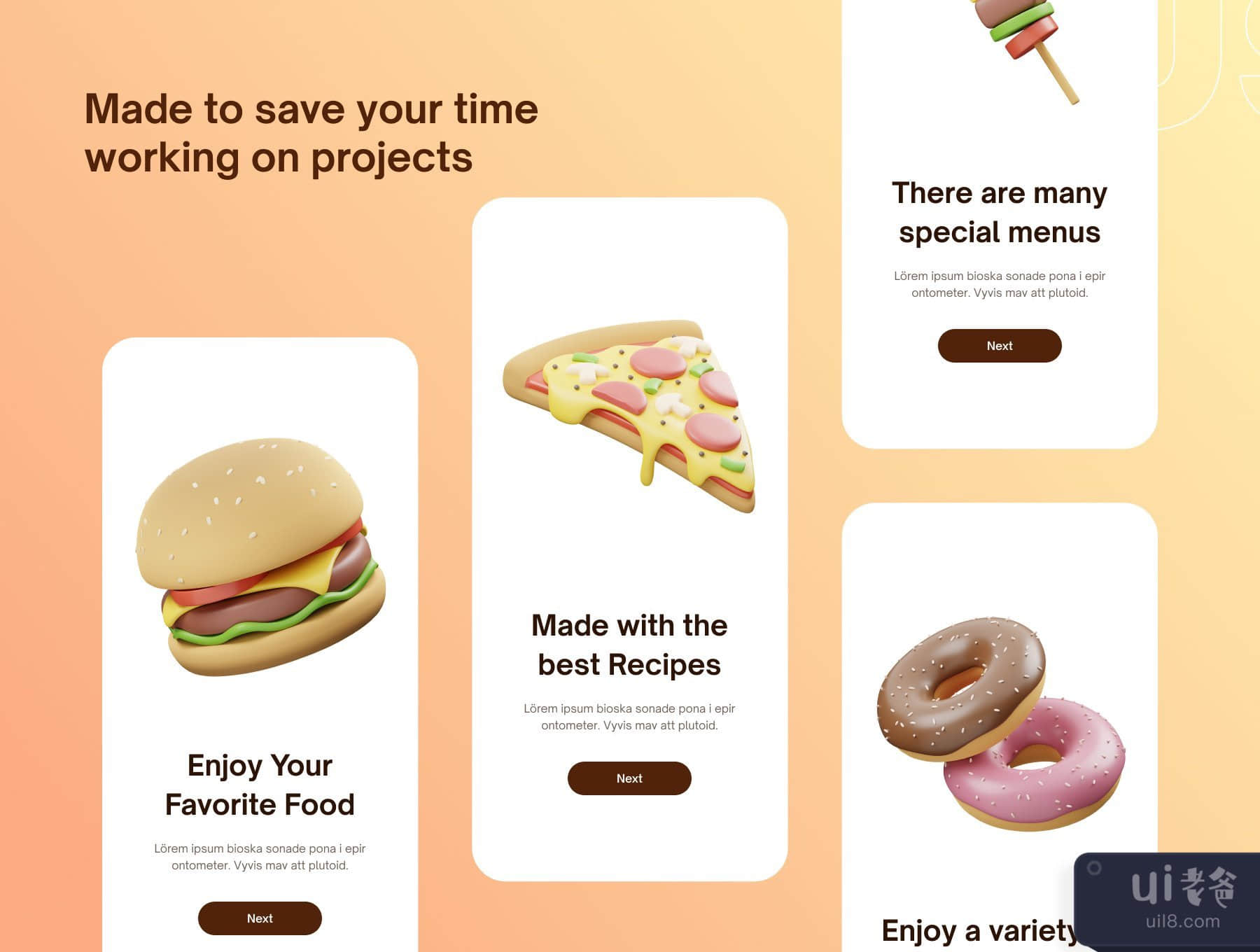 Emamfood is a pack of custom 3D icons suitable for any Food and Drinks product. Make your next product and project more stunning with 3D Icons.