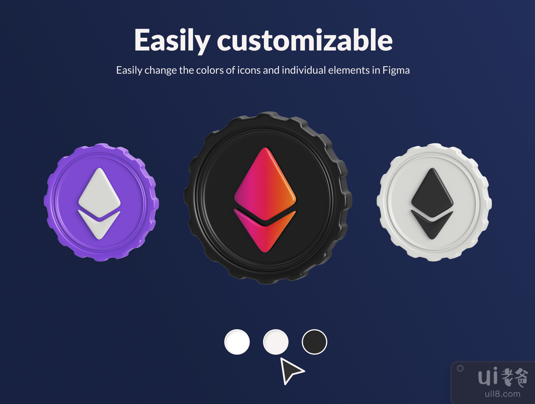 There are 45 unique coins of the most popular cryptocurrencies in the set. You can easily edit icons in Figma, fully customize and change icons in Cinema 4D(.c4d) or another 3D program (.fbx), or use ready-made images in PNG format with a transparent background.