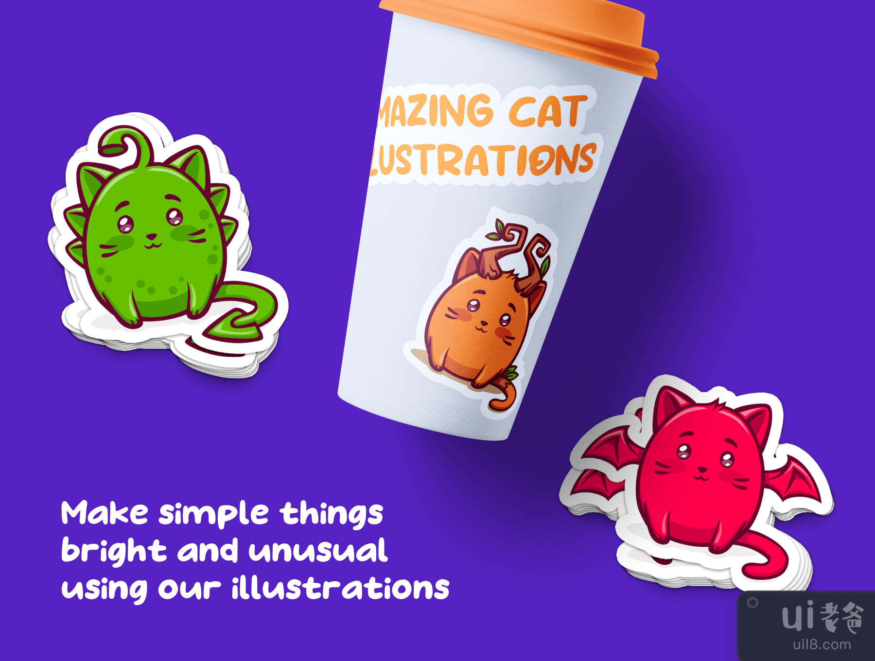 概述惊人的猫贴纸非常适合您的笔记本、日记、马克杯、笔记本电脑等。您还可以将它们用作聊天表情符号或装饰您的 Instagram 故事