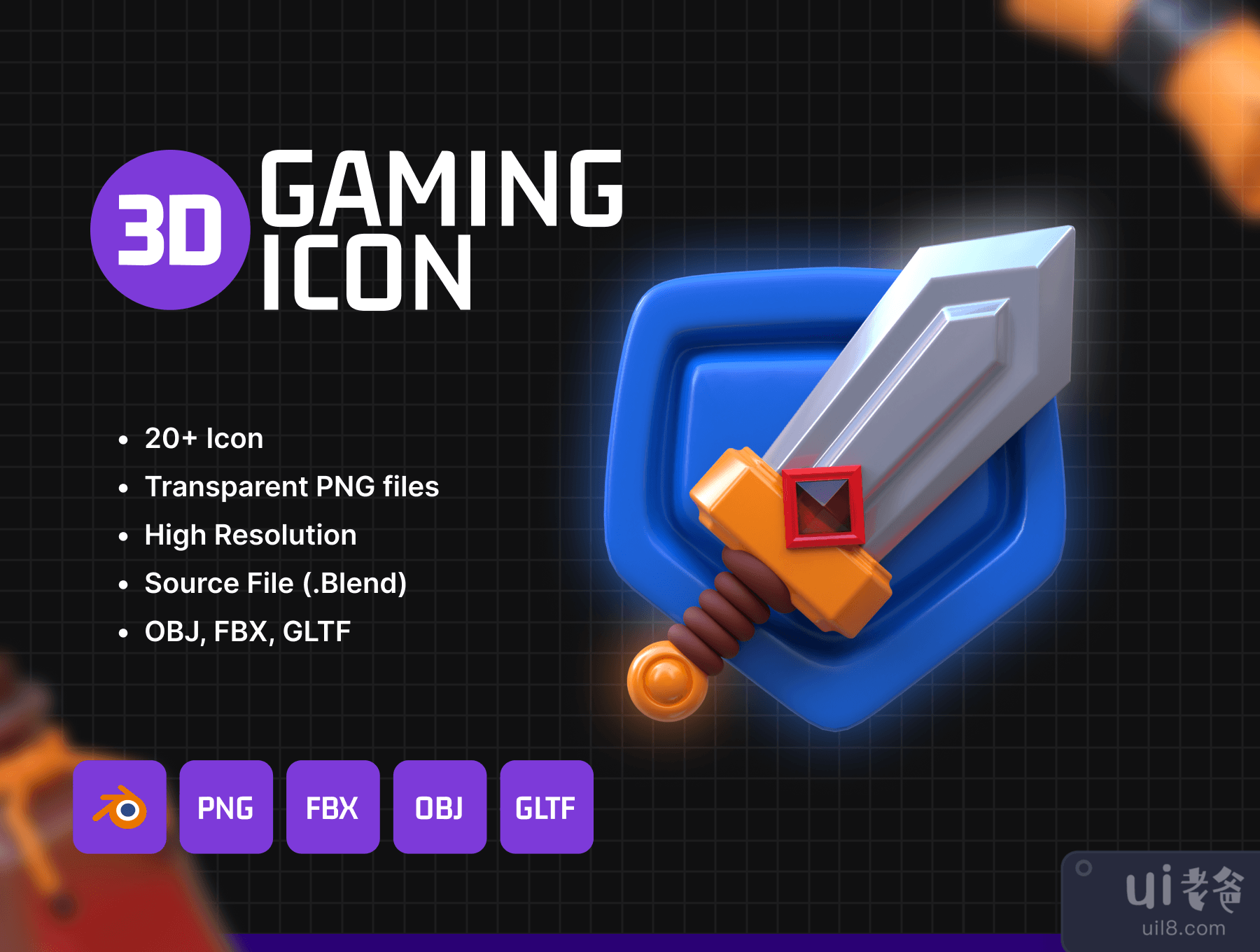 Overview3D Stylized Game Icon can be used for gaming industry design needs, animation, web design, UI design, presentation slides, posters, and others.
