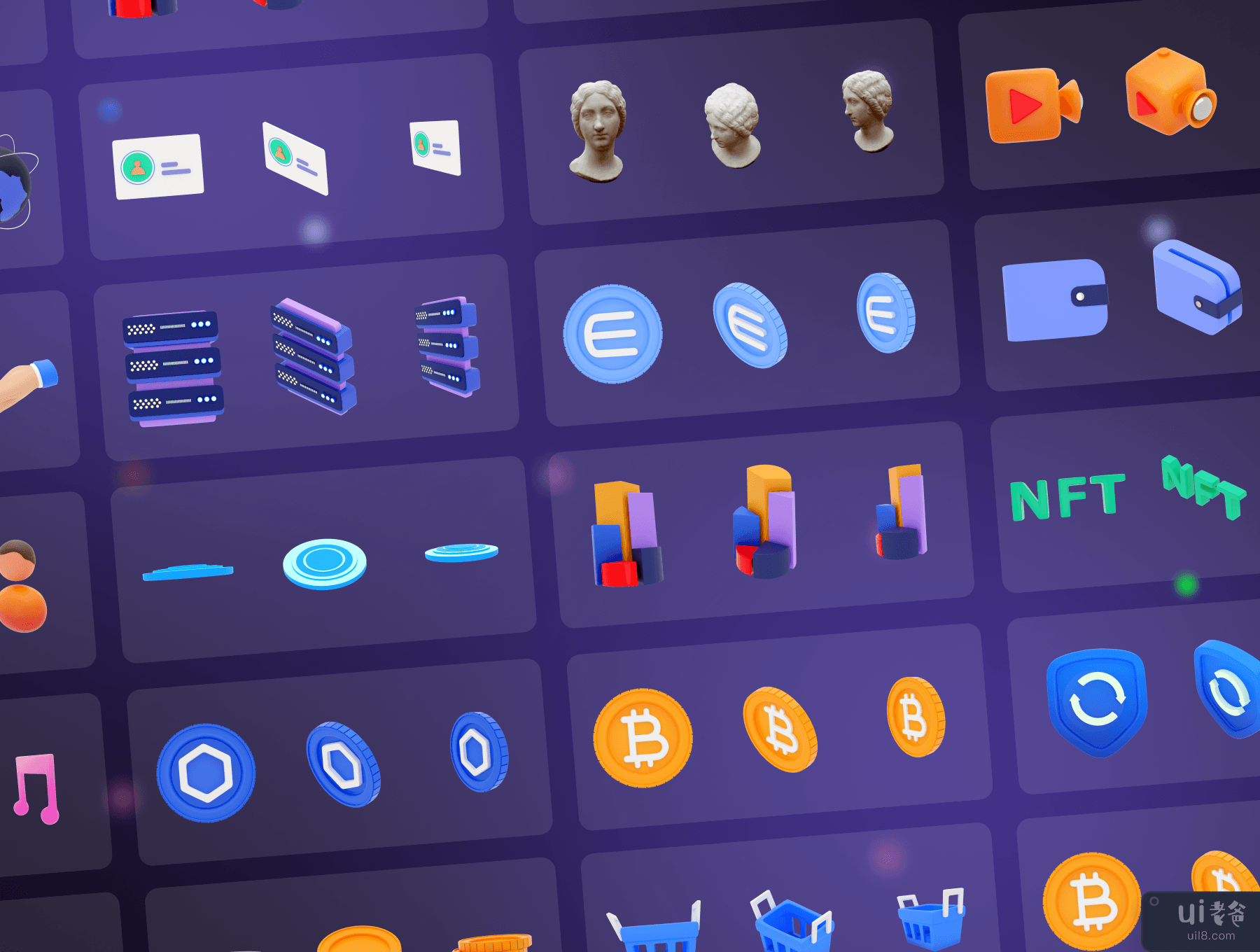 我们的资源与 Blender、Figma、Sketch、PNG 和 PSD 兼容,使其用途广泛且易于使用。无论您是处理图表还是硬币和代币,加密货币 3D 组合和图标集都拥有将您的加密设计变为现实所需的一切。