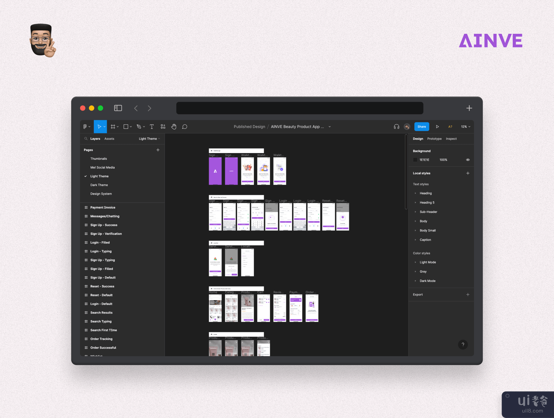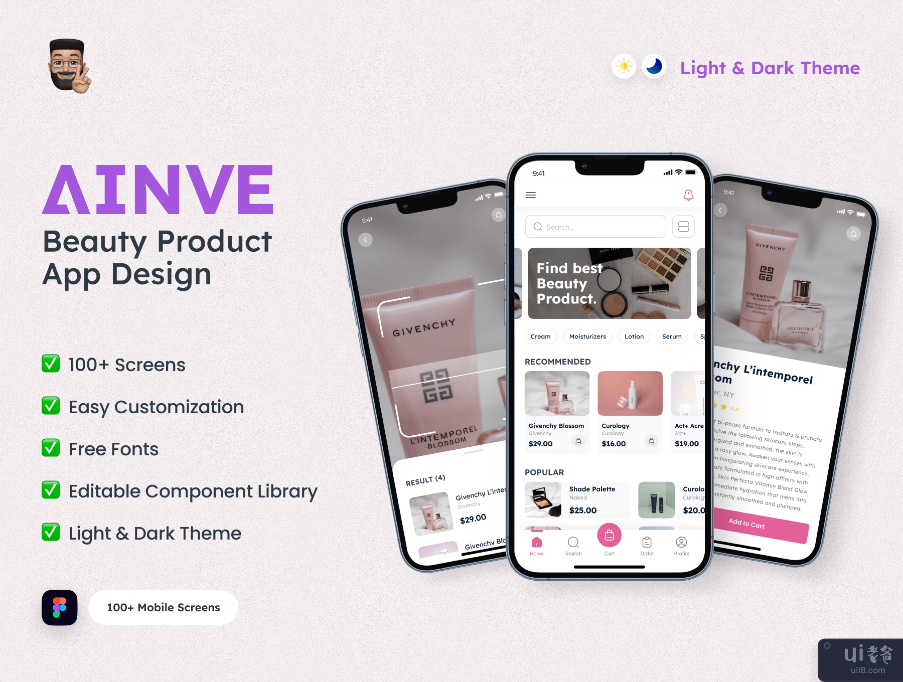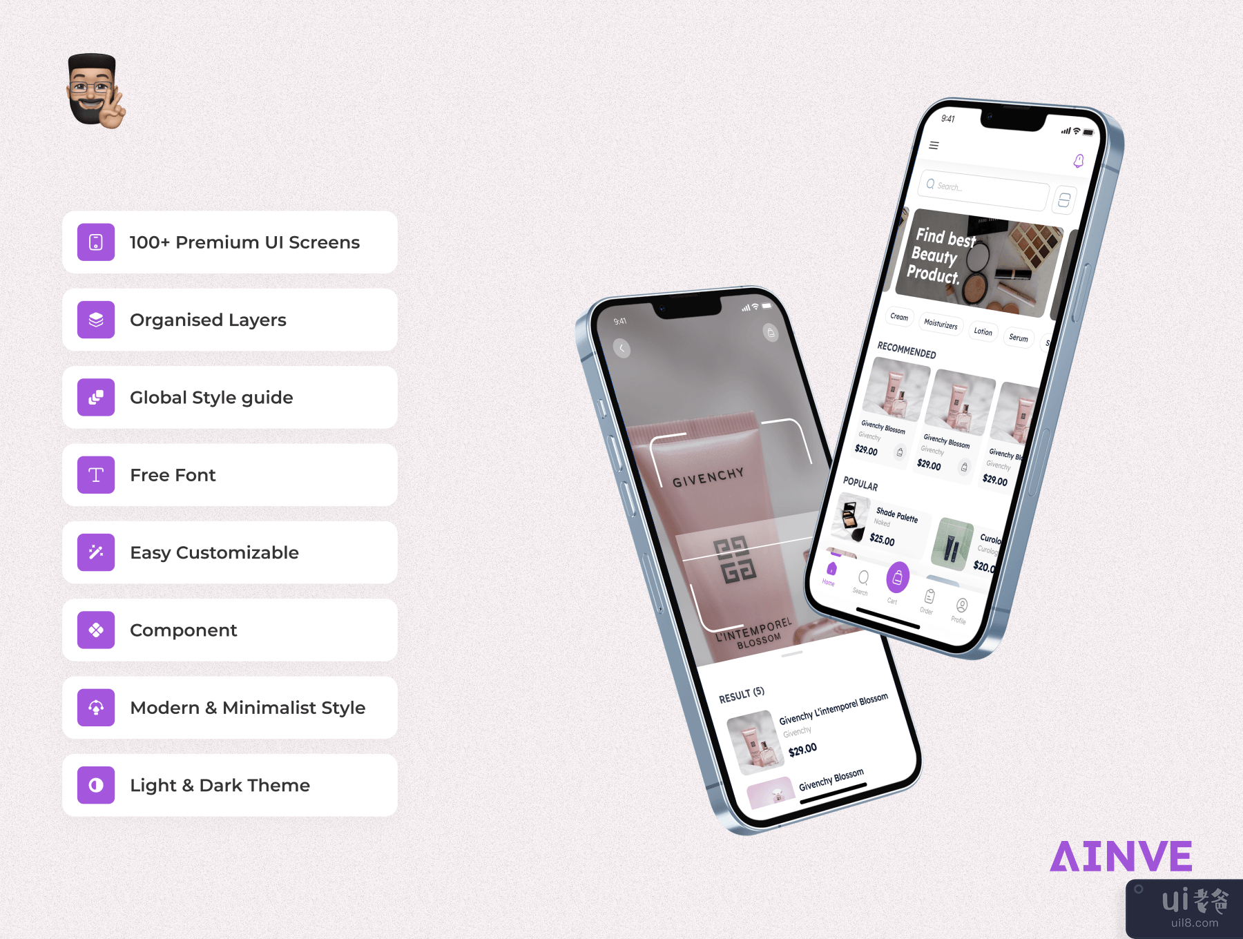 OverviewAinve Beauty Product App Design is a women's Beauty product-based App Design. includes 100+ iOS screen templates designed with Figma. With Modern & Minimalist Style iOS UI Kit you can easily develop your projects and speed up your design workflow.Highlights100+ Premium UI ScreensLight & Dark ThemeComponentEasy CustomizableGlobal Style guideModern & Minimalist StyleFormat16.6 MB in1 File