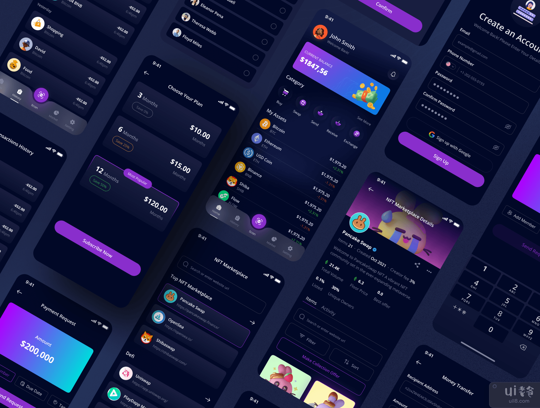 比特脉冲加密钱包移动应用程序 UI 工具包 (Bit Pulse Crypto Wallet Mobile App UI Kit)