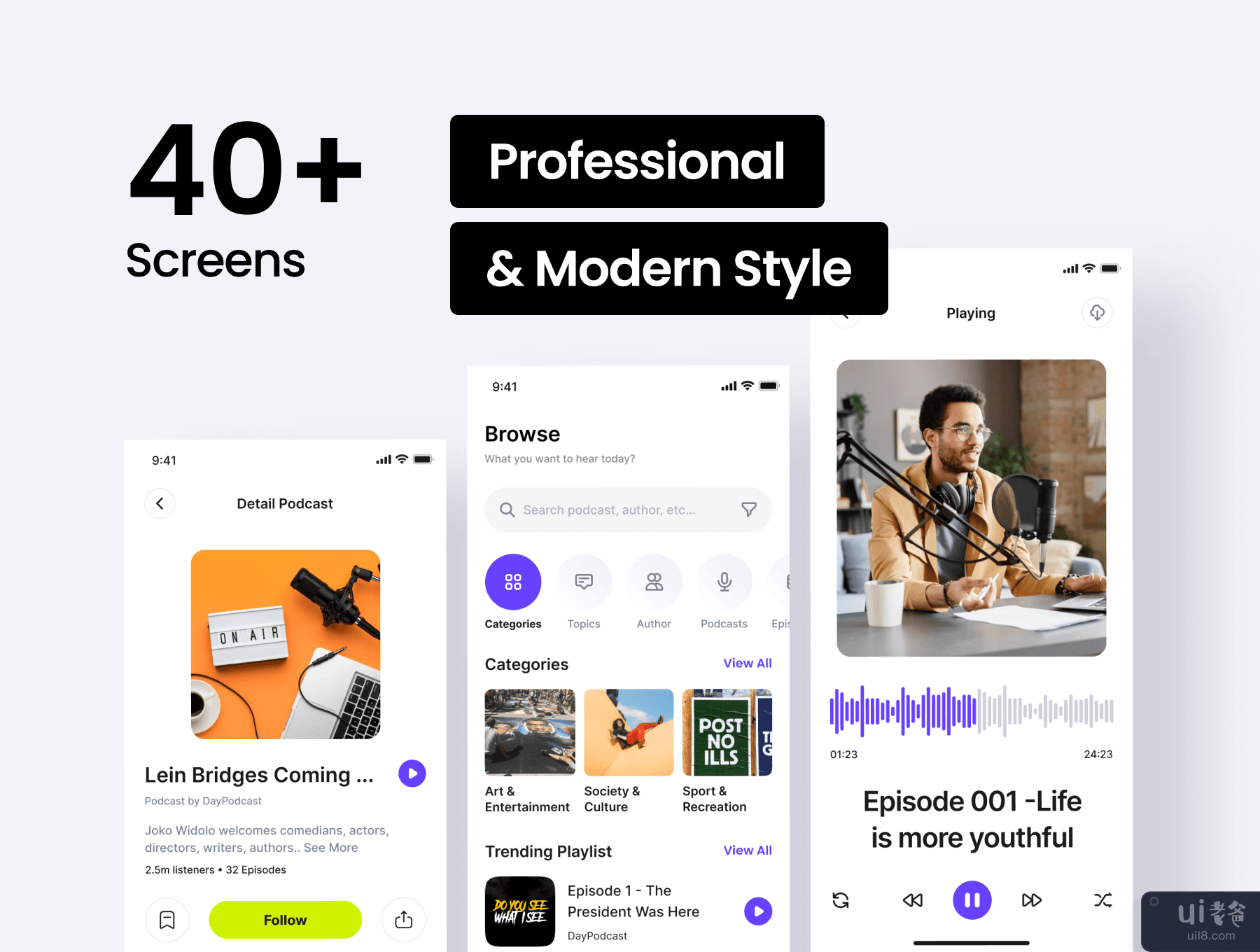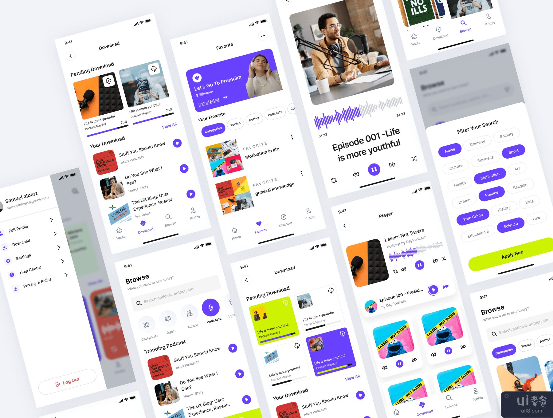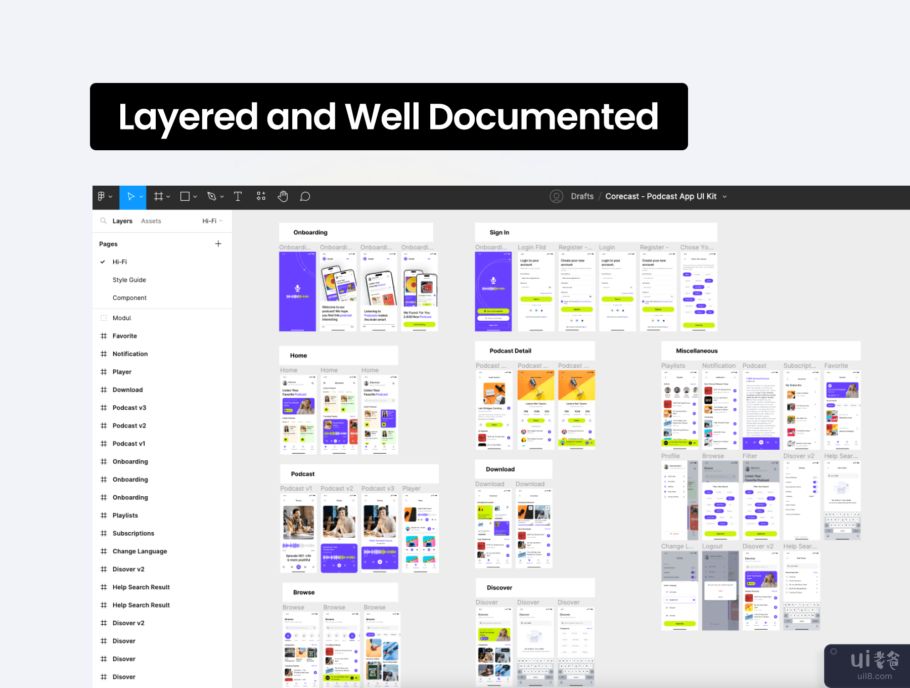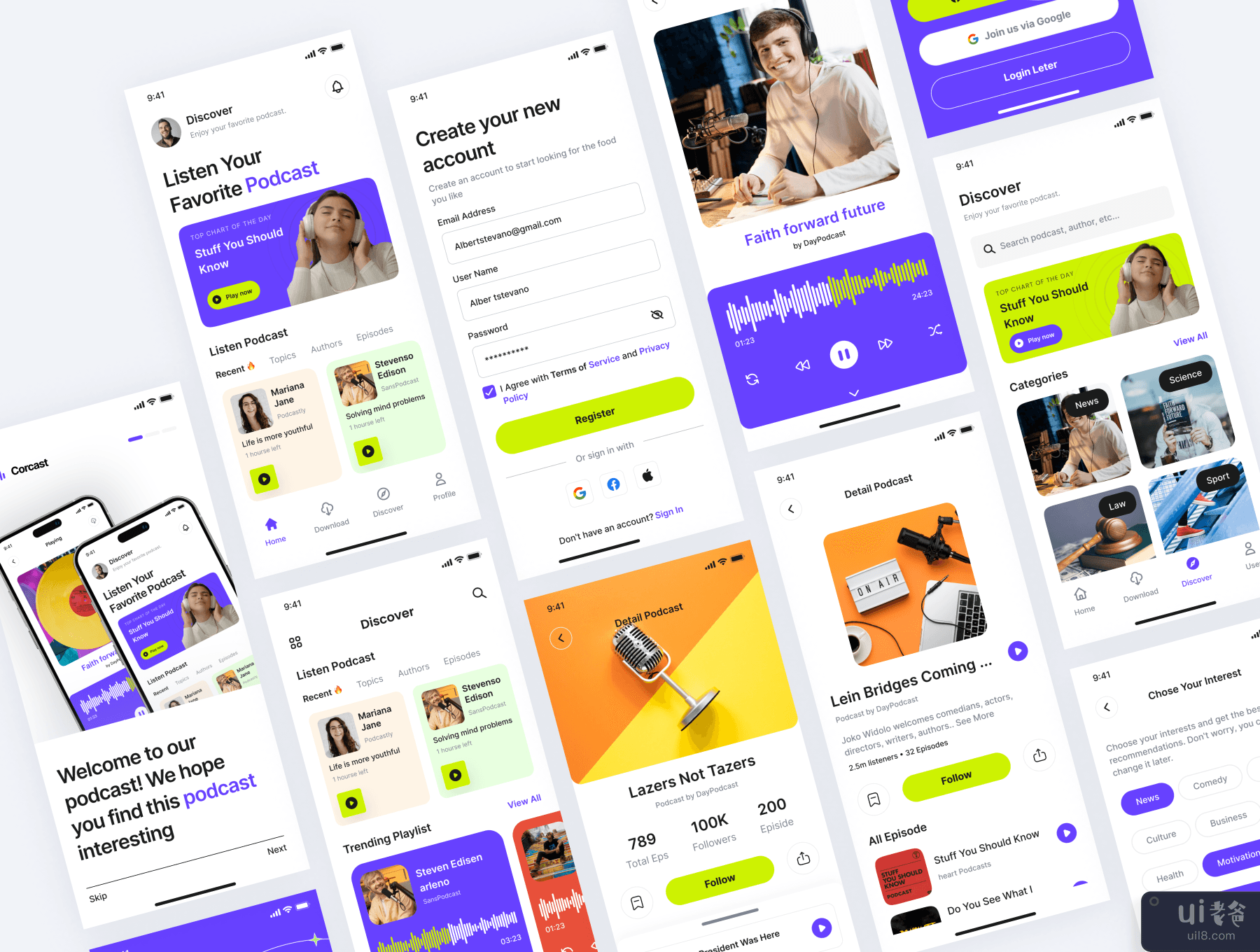 Corecast - 播客应用程序 UI 工具包 (Corecast - Podcast App UI Kit)