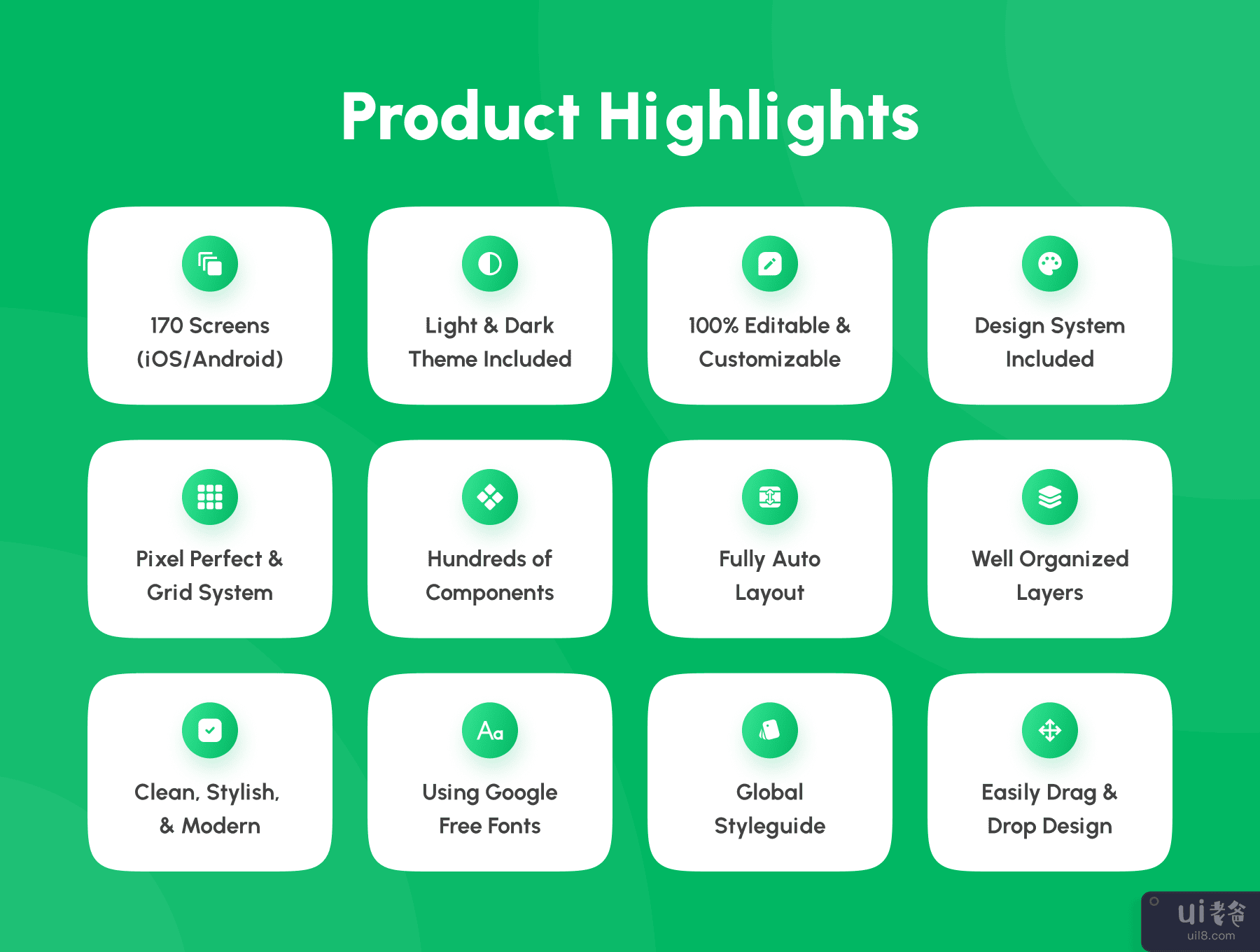 与我联系:sobakhul.munir527@gmail.com亮点170个屏幕(支持iOS/Android)包含明暗主题100%可编辑和可定制设计系统和全局样式指南组织良好的图层和像素完美现代、全自动布局和网格系统格式21.8 MB in1文件