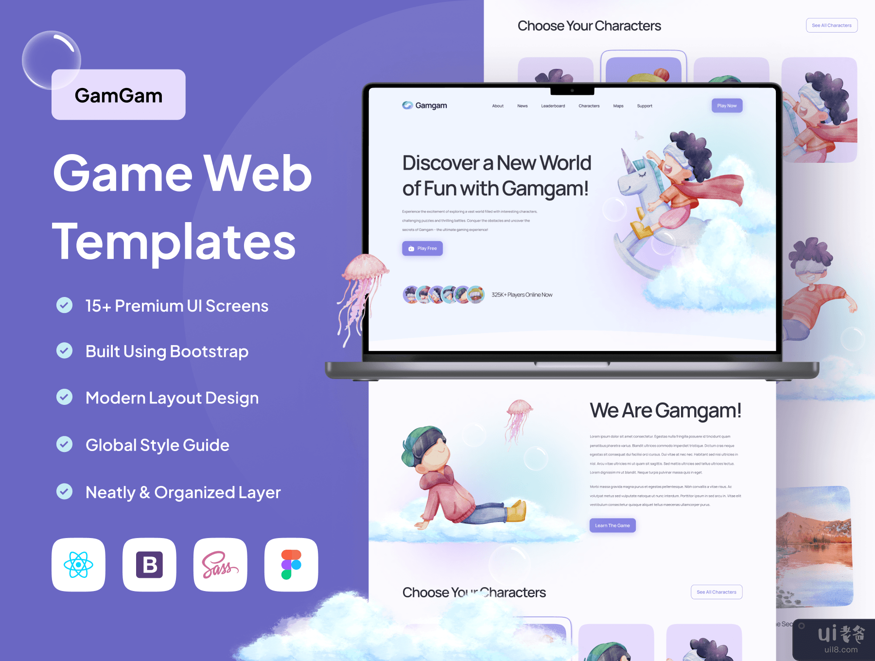 OverviewGamGam is an HTML landing page template with 15+ modern screens for game adventures with beautiful characters. GamGam with Bootstrap was used in this package and GamGam has something to offer that can make your gaming sessions even more enjoyable. This premium SAAS template was created to expedite the design and development process, and it's simple to modify with easily accessible font sources, colours, and style options.