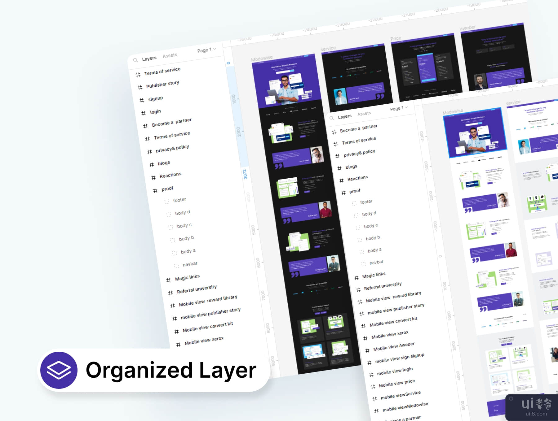 Modwise is a modern UI Kit for newsletters and growth marketing agencies. The design is built and fully organized for both desktop and mobile versions.