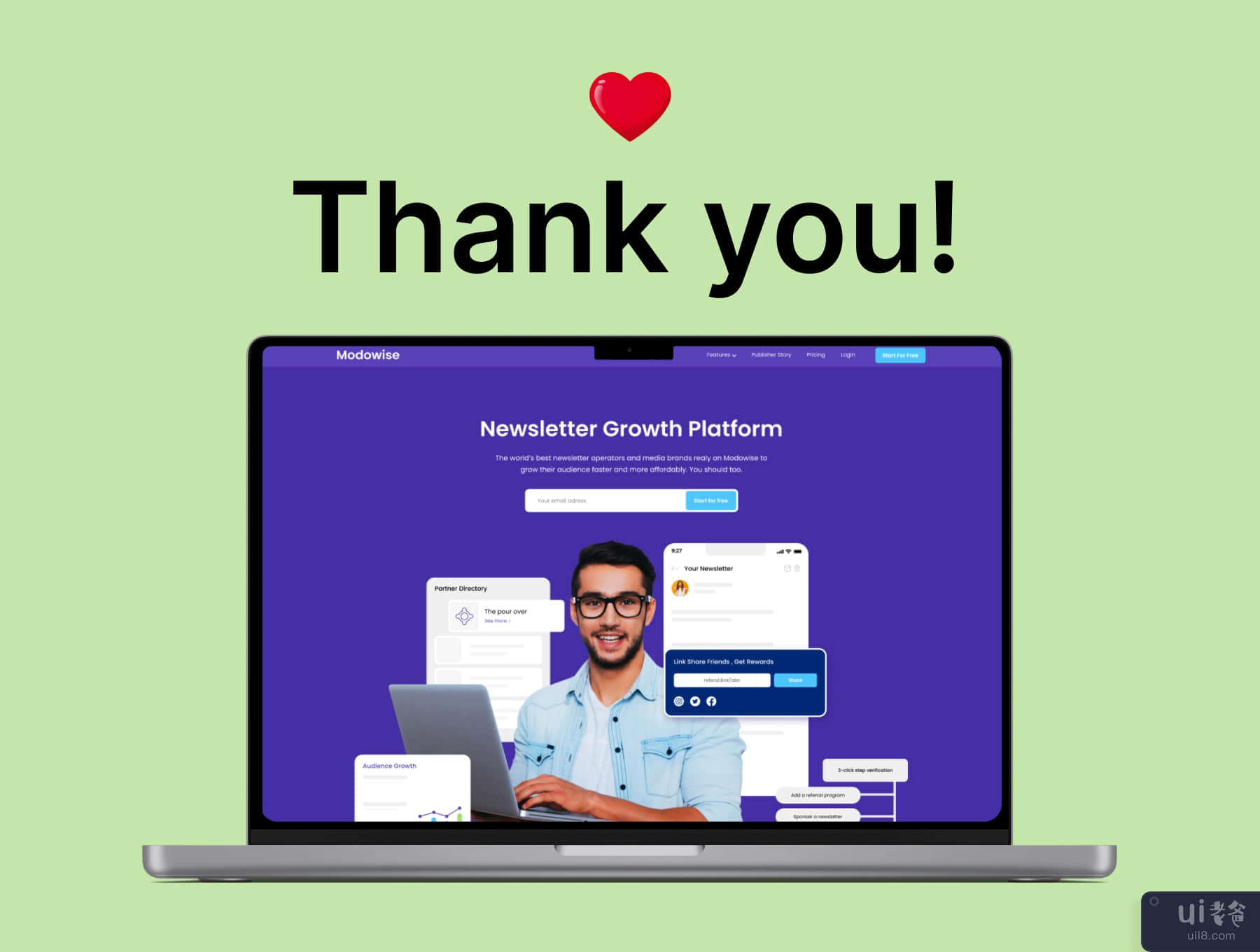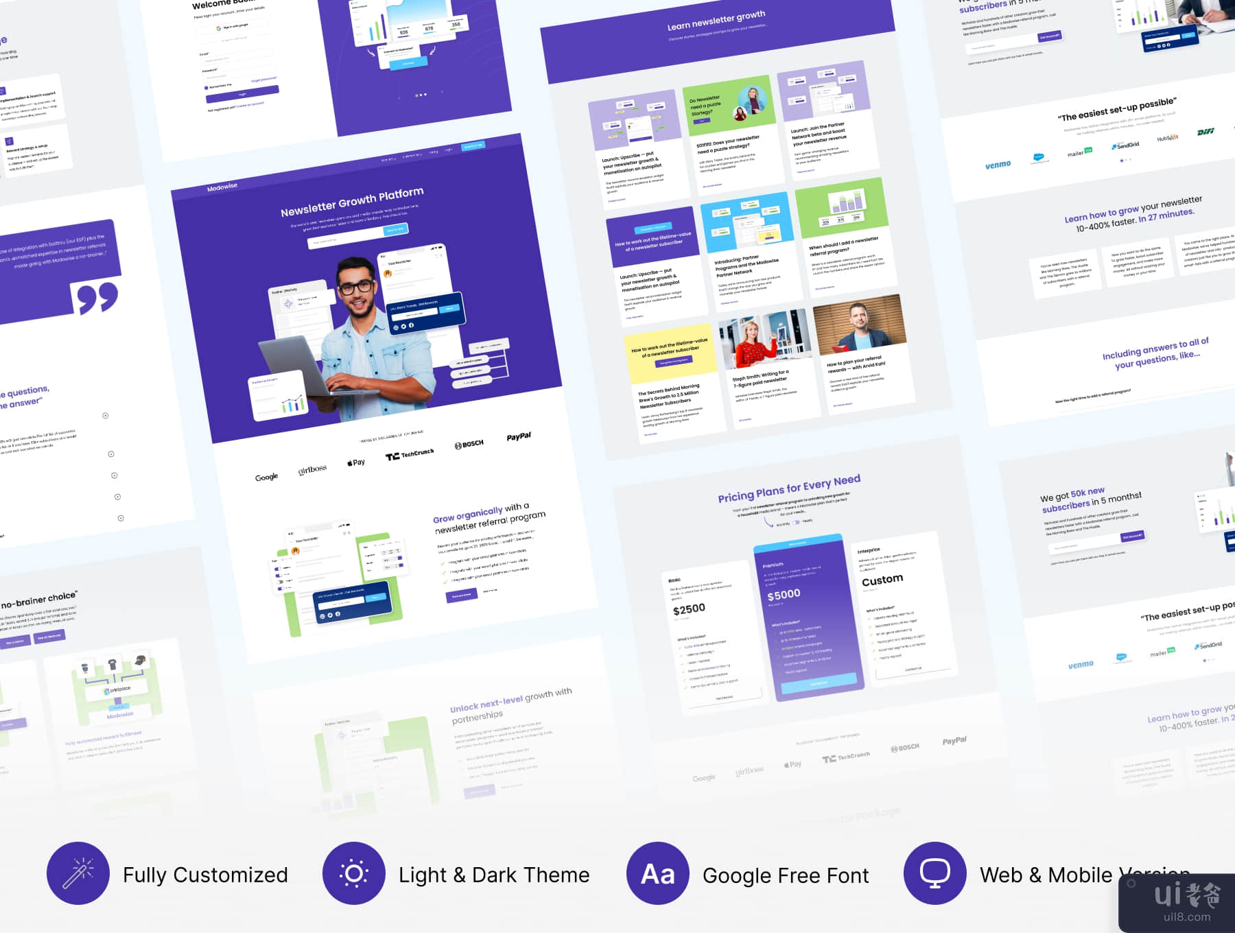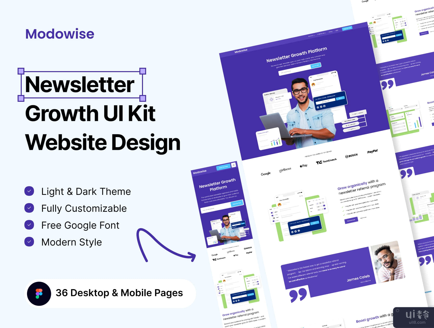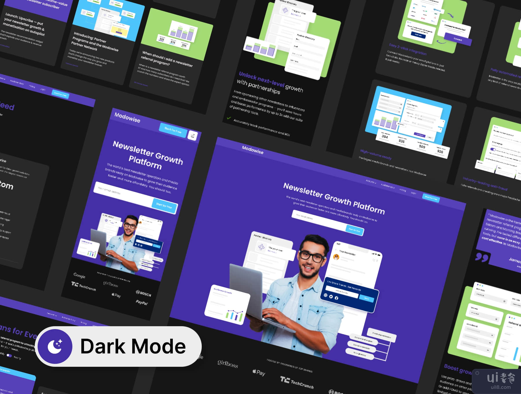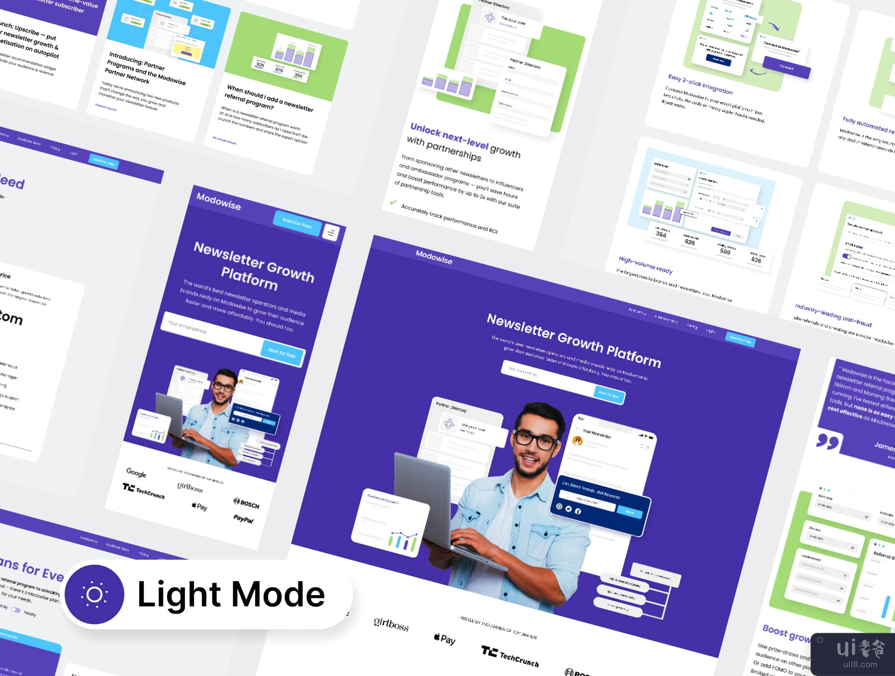 Modwise 是一款现代 UI 工具包,适用于新闻通讯和增长营销机构。该设计同时适用于桌面版和移动版。