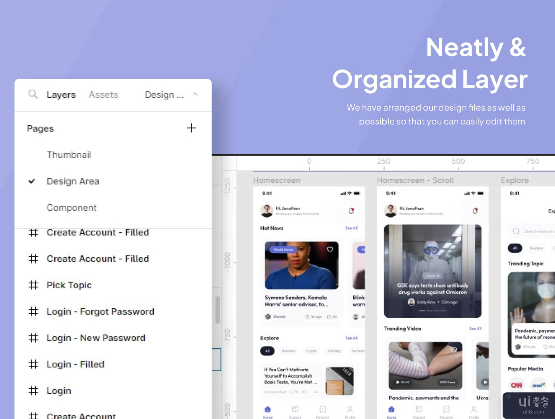 I hope this will help you, and make your clients happy !!Highlights40+ Premium screensFull customizableModern and minimalist styleNeatly & Organized LayerGlobal style guideFigma Files IncludedFormat33.4 MB in1 File