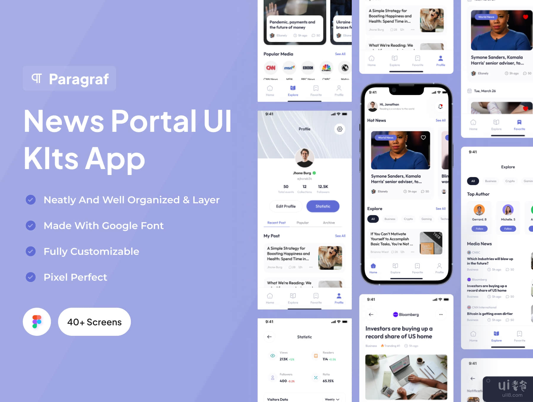 OverviewParagraf Minimaslist design UI Kits for News Portal Apps with 40+ screens.