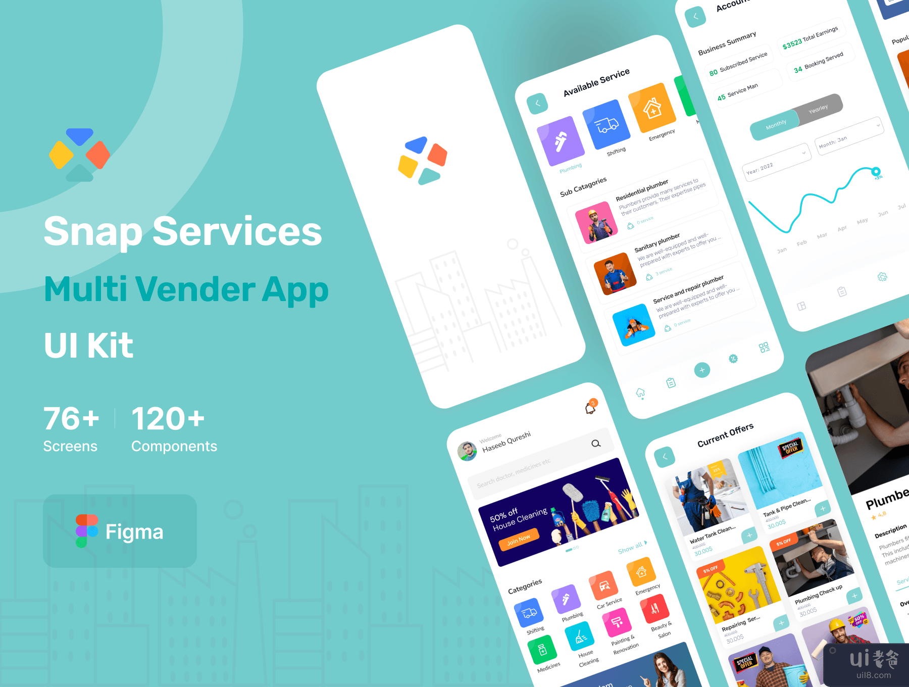 Snap Services - 多供应商应用程序用户界面套件 (Snap Services - Multi vendor App Ui Kit)