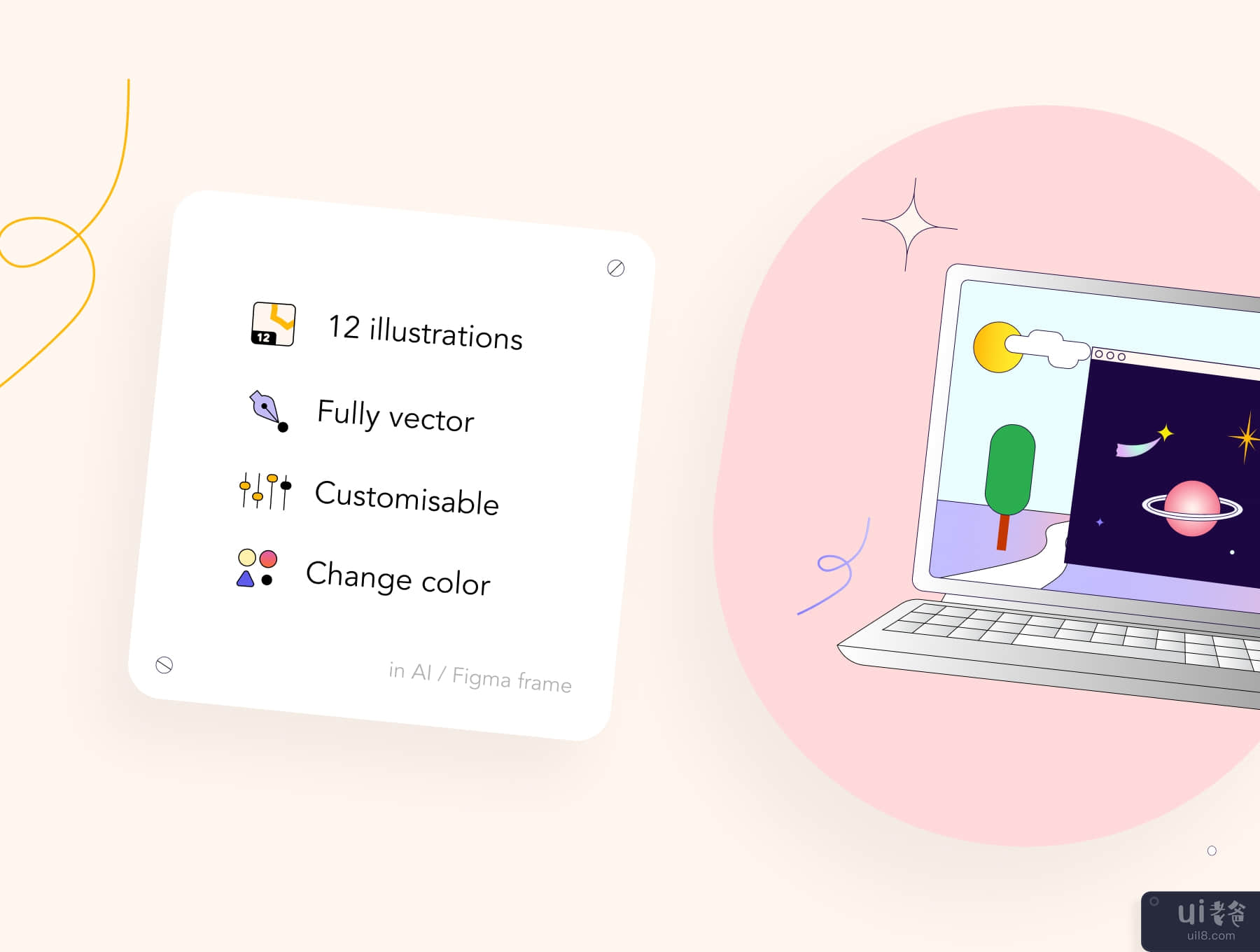 Contact us: xhyphenk@gmail.comHighlights12 surreal illustrationsFully editable vector sourceSuitable for mobile and web applicationsLayered and organisedHigh-resolution assetsUnlimited support from our teamFormat2.5 MB in1 File
