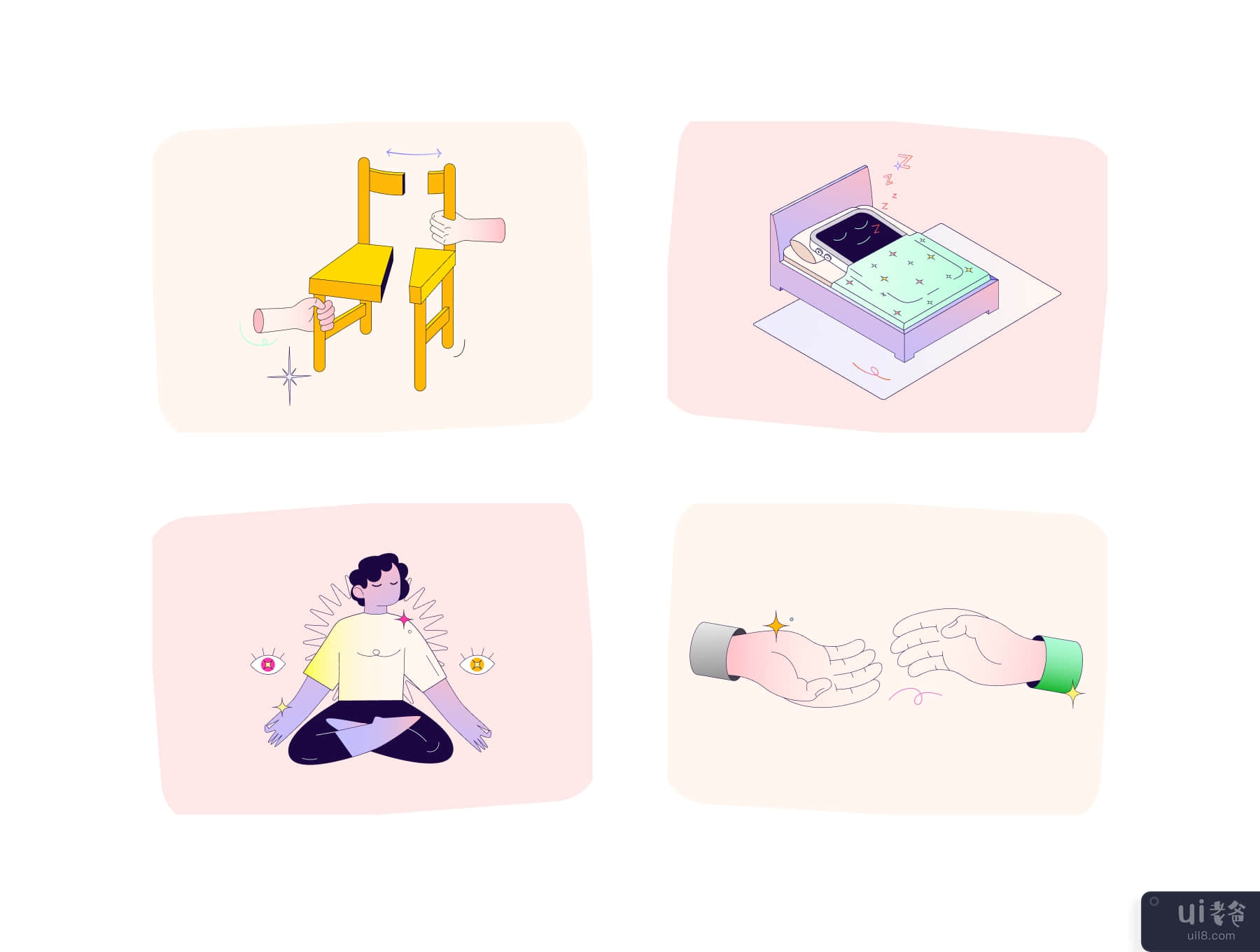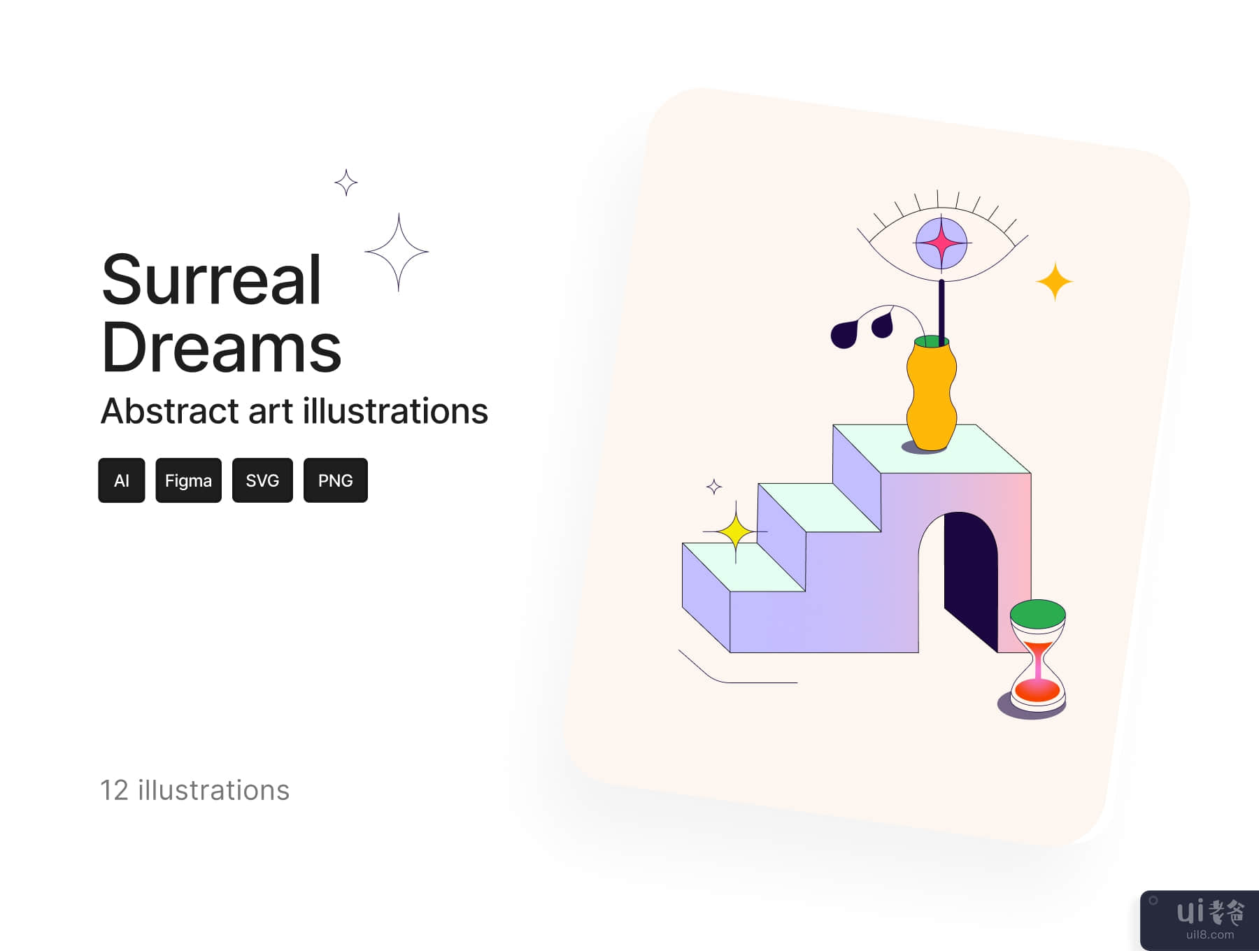 联系我们:xhyphenk@gmail.com亮点12个超现实插图完全可编辑矢量源适合移动和网络应用程序分层和组织高分辨率资产我们团队的无限支持格式2.5 MB in1文件
