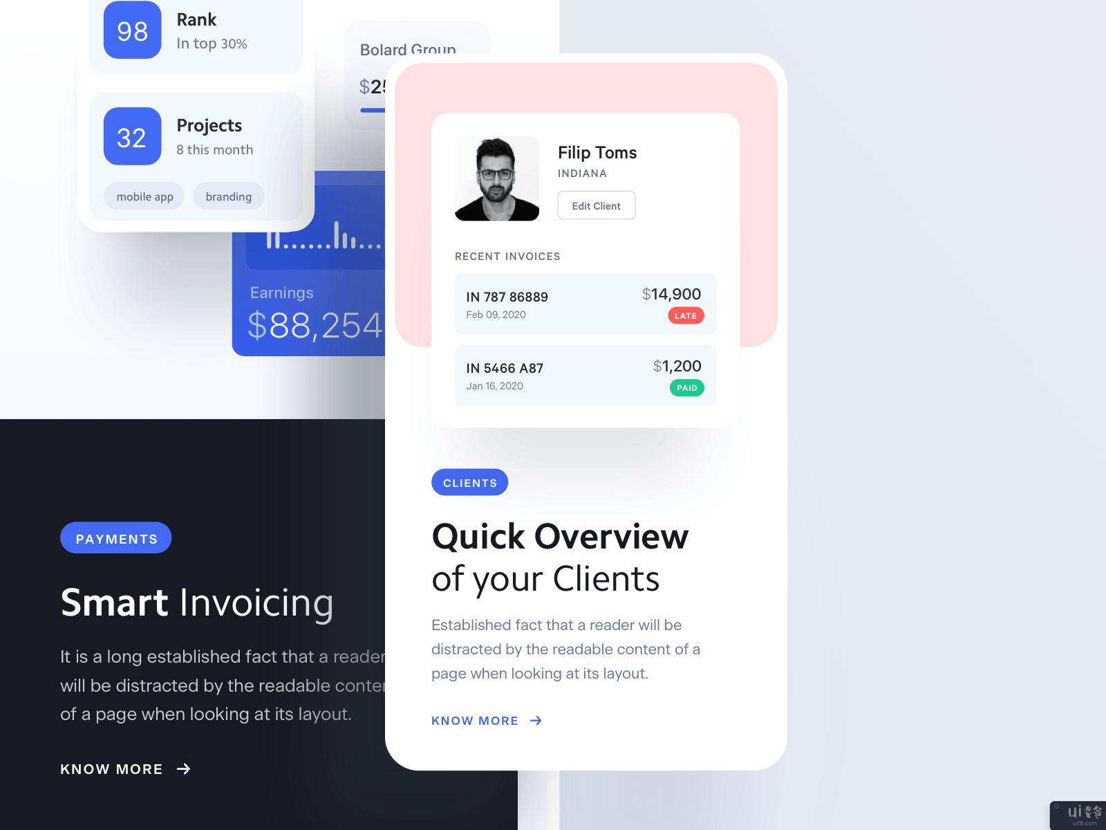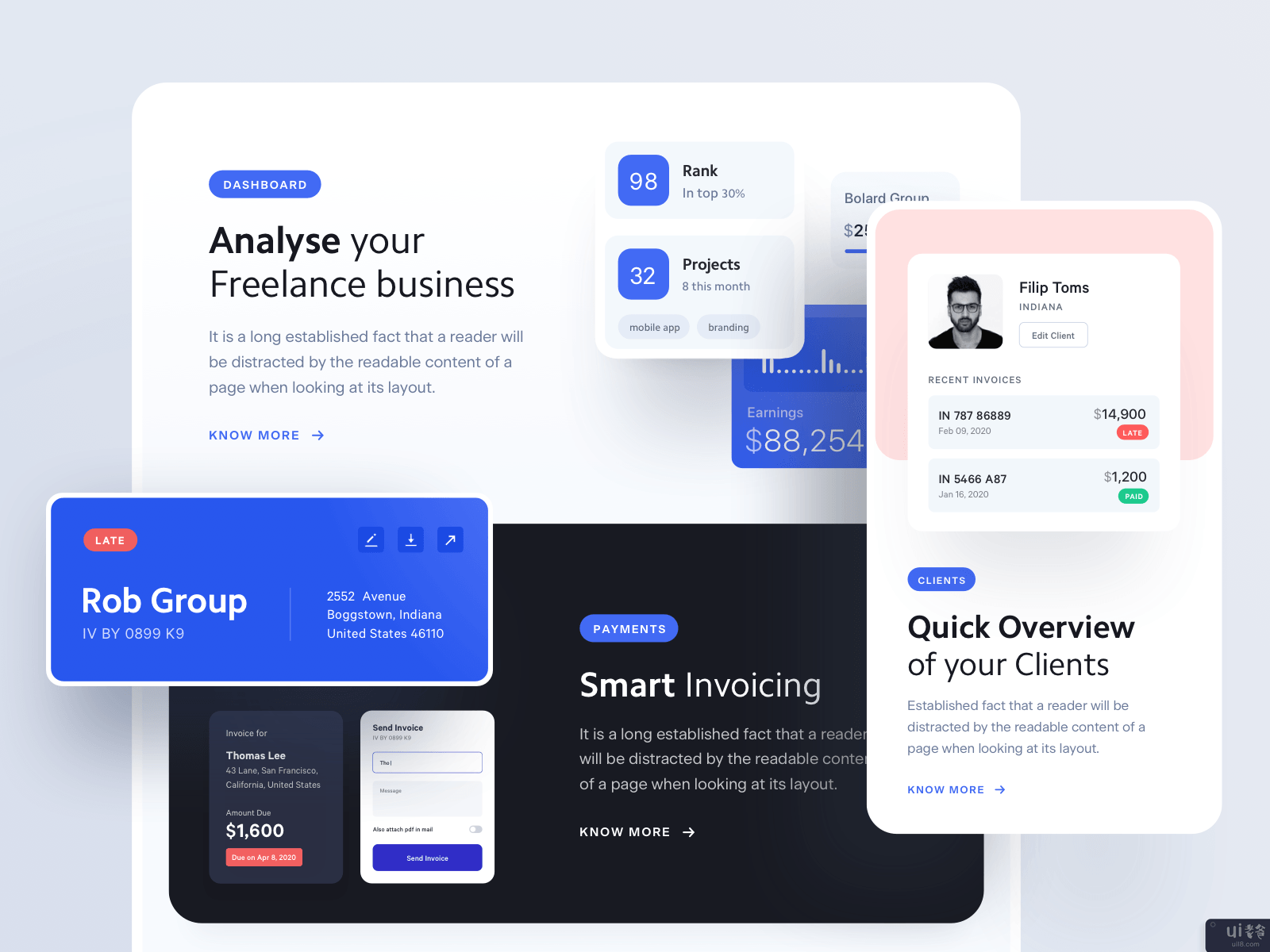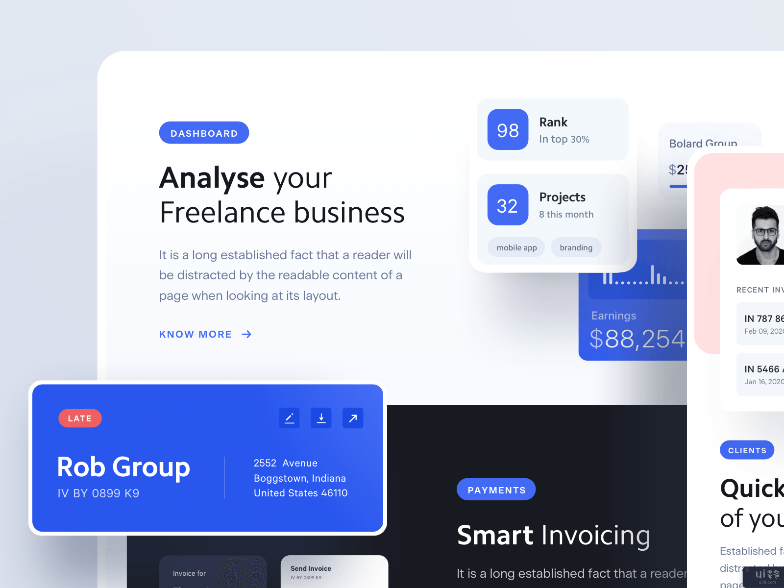 Section explaining some of the product features in a freelance platform, hope you like it.
