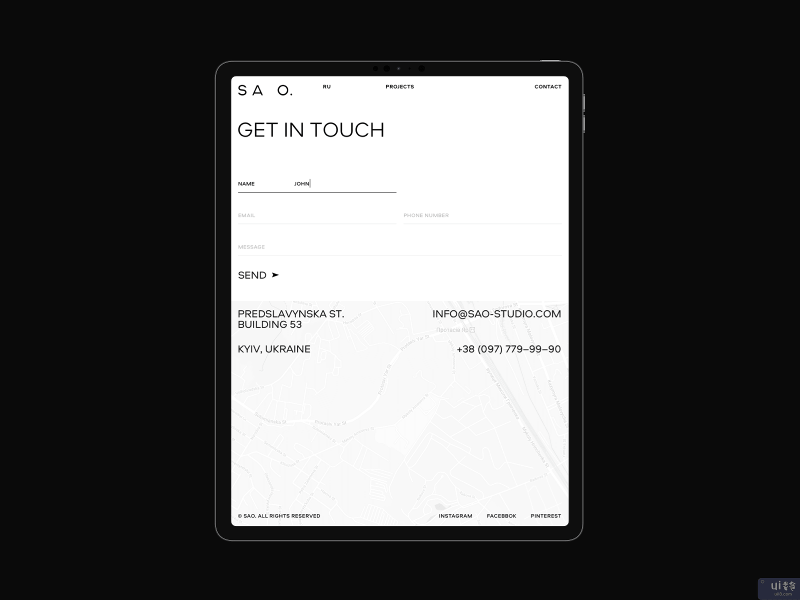 SAO is an abbreviation. "S" is meaning stylish interior design solutions for living and commercial spaces. "A" is meaning accurate space layouts created by client needs. "O" is meaning original materials, furniture, and decor are making a fantastic interior.