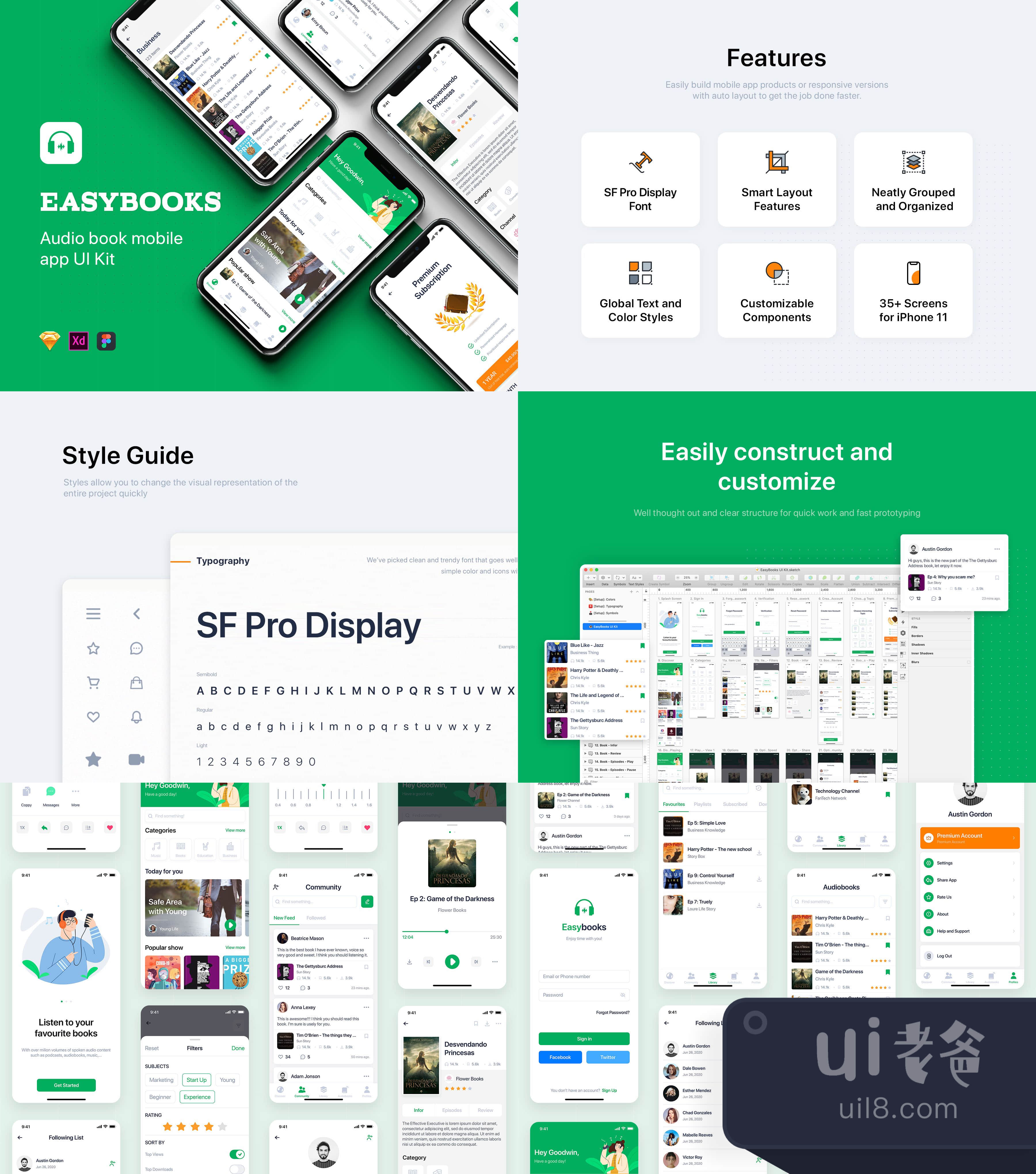 Easybooks - Audiobook UI Kit is built on the principles of the atomic design system. This set comes with 35+ beautifully designed screens that focus on every detail. The ingredients are meticulously designed to meet the needs of Audio book mobile app.
