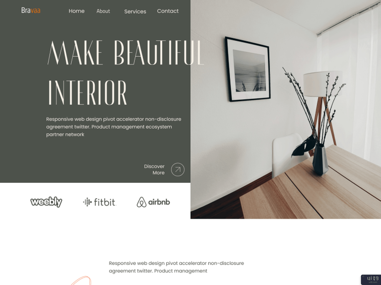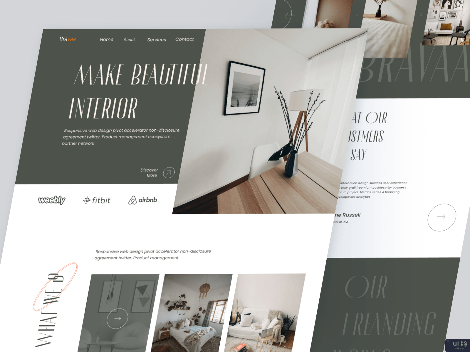 希望你做得很好。这是一个室内设计着陆页的概念。让我知道你对这个设计的看法,别忘了按下"L"按钮?