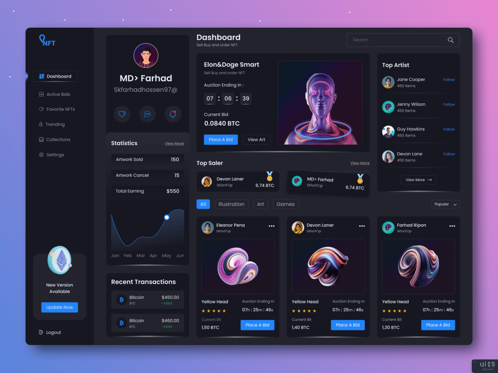 NFT仪表板 - UI设计。(NFT Dashboard - UI Design.)