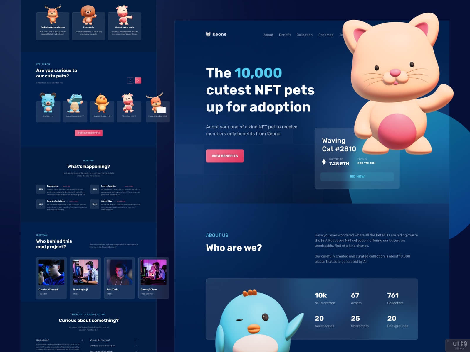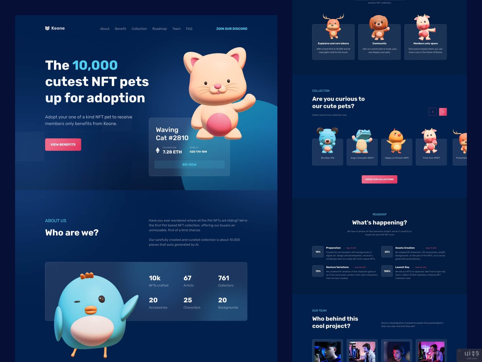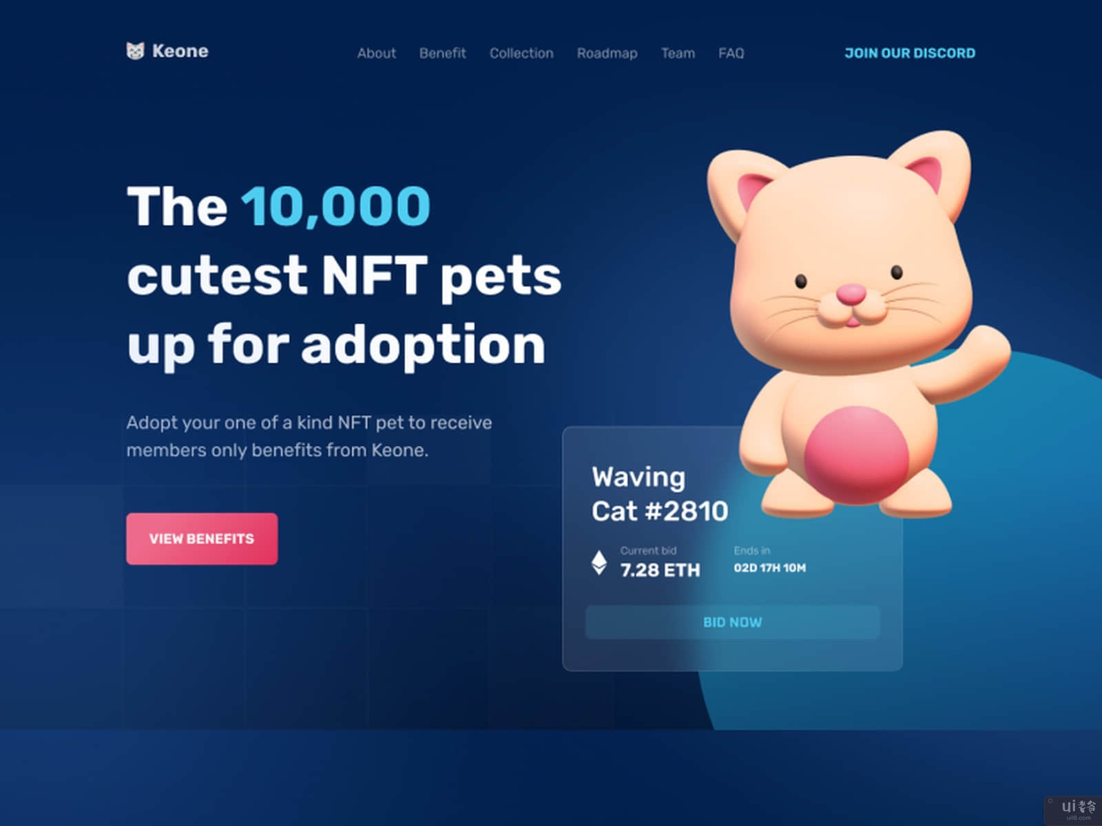 Introducing our new hero section exploration. Keone, a pet NFT marketplace.