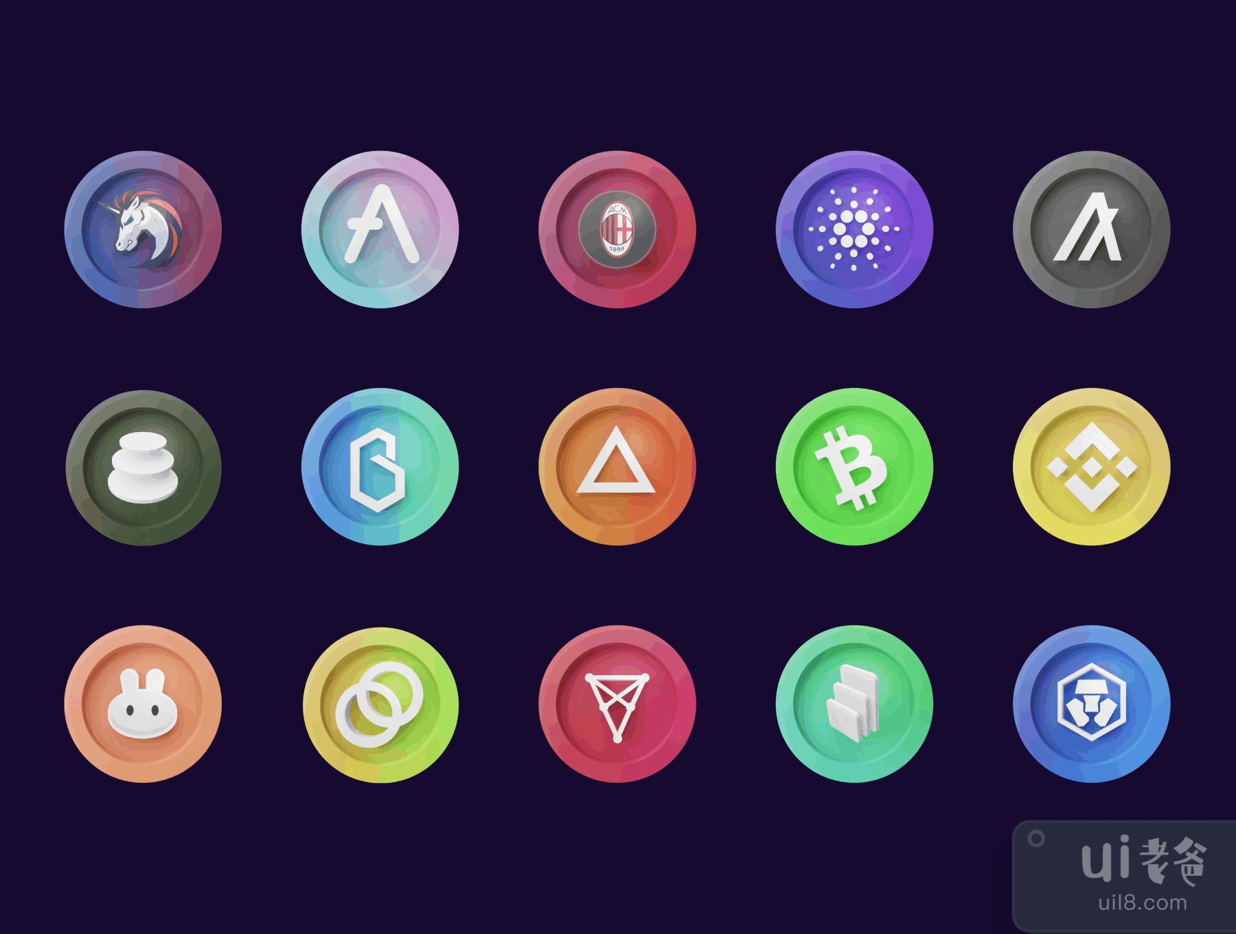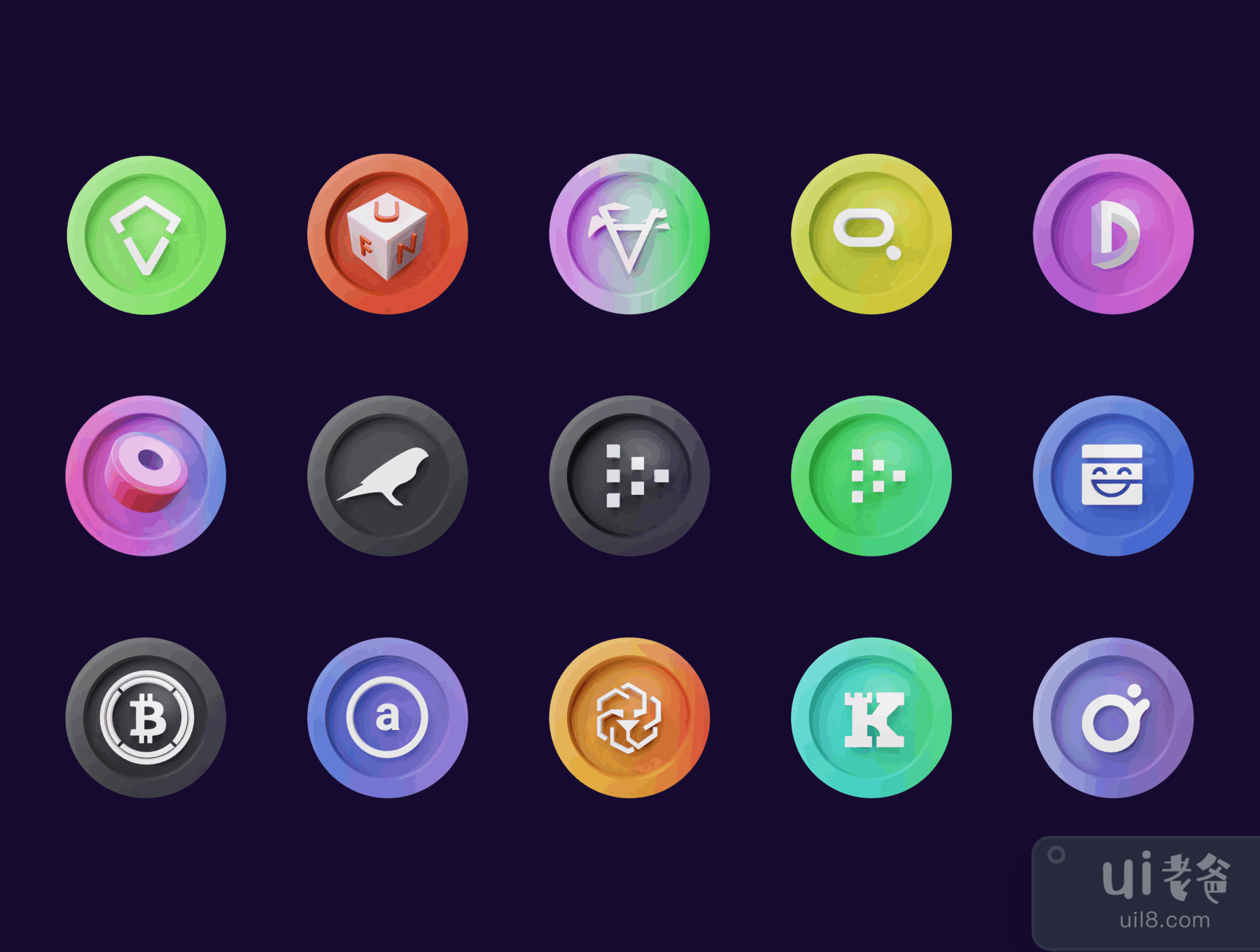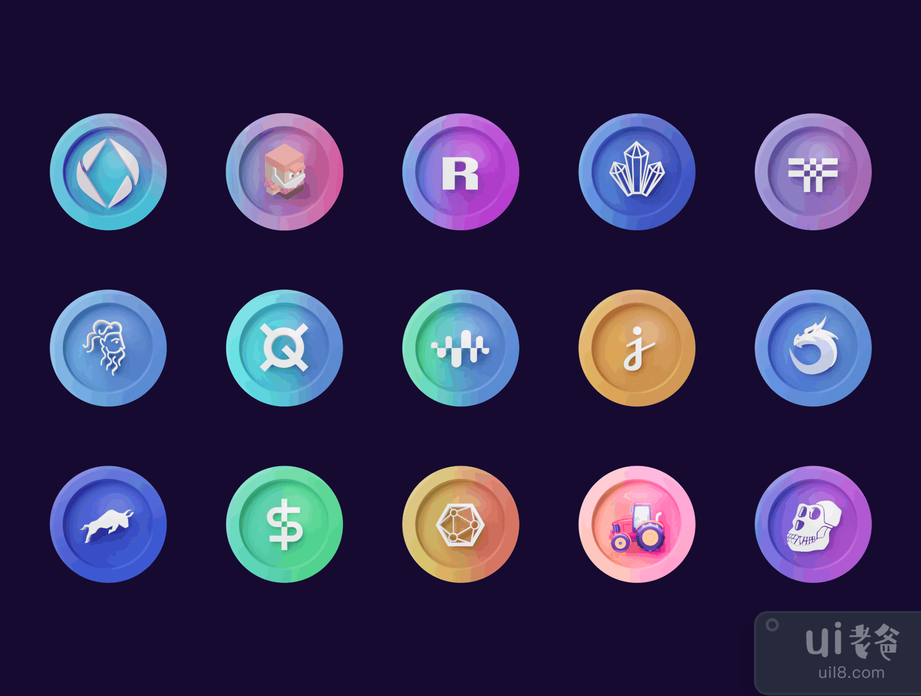 Over 200+ cryptos icons – ready to use in all your projects. A universal icon pack that covers all categories & is continuously developed.